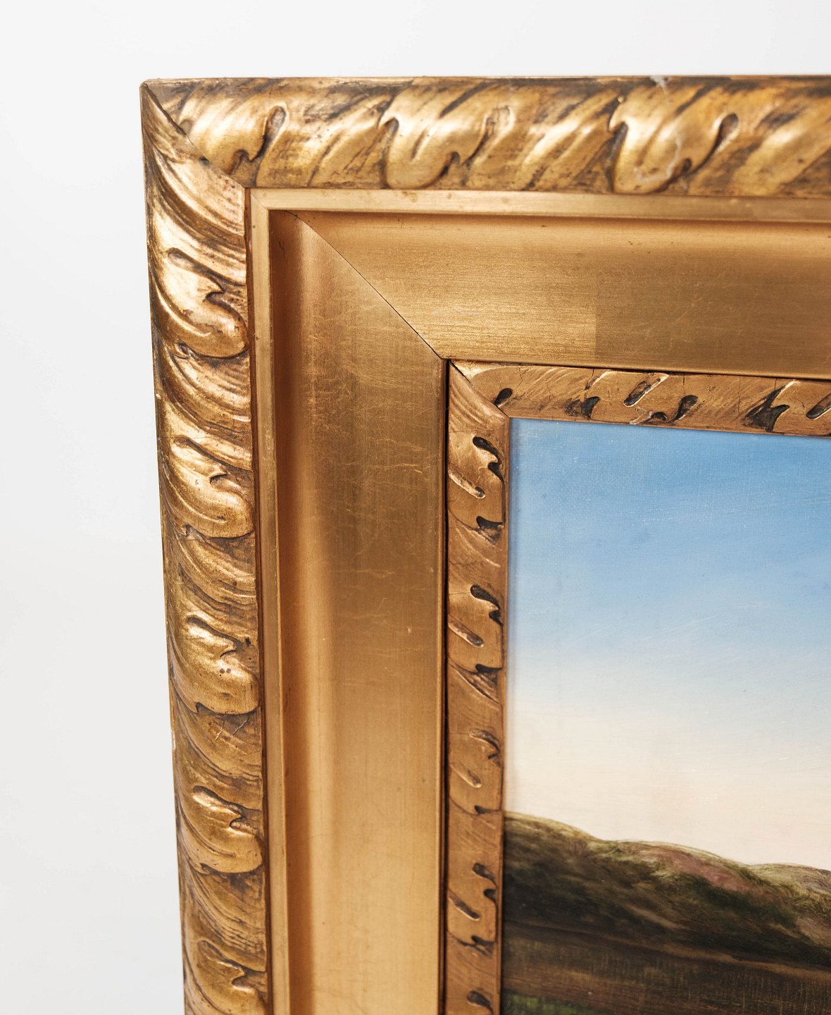 Painting on canvas with nature motif and with wide gilded frame from the 1910s.
