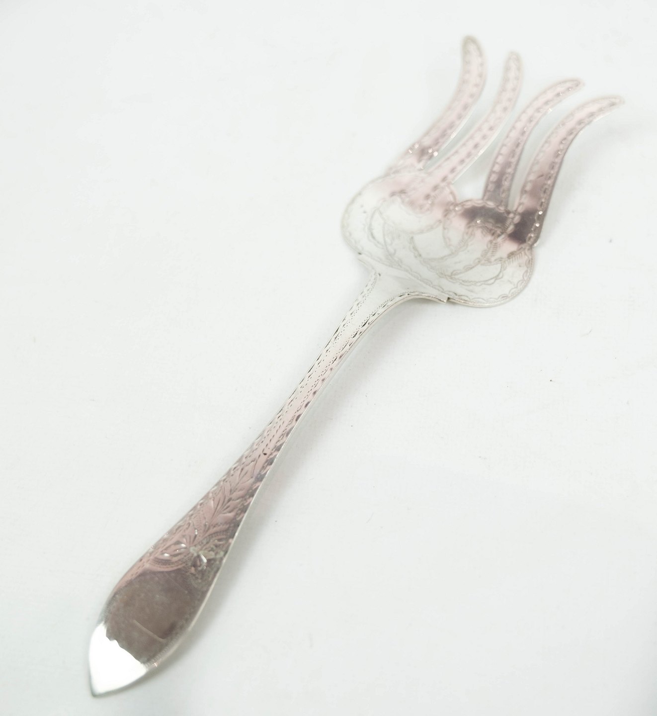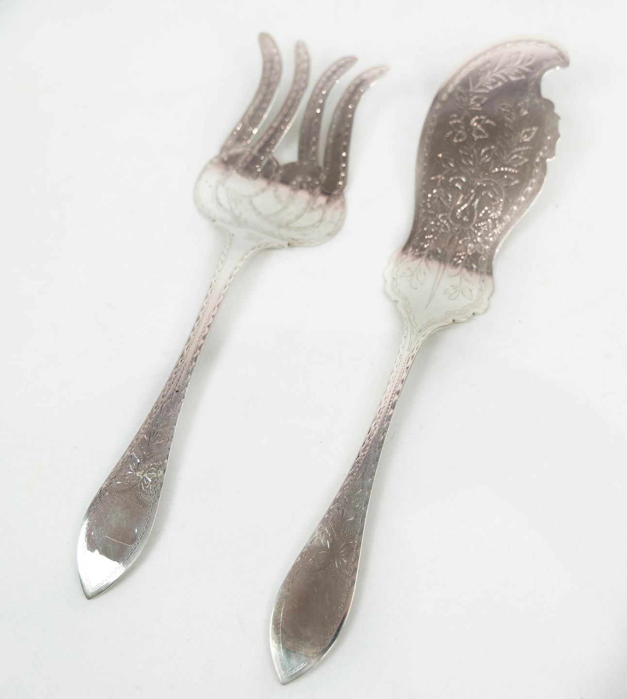 Fiske serveringssæt i Empire af tretårnet sølv.
