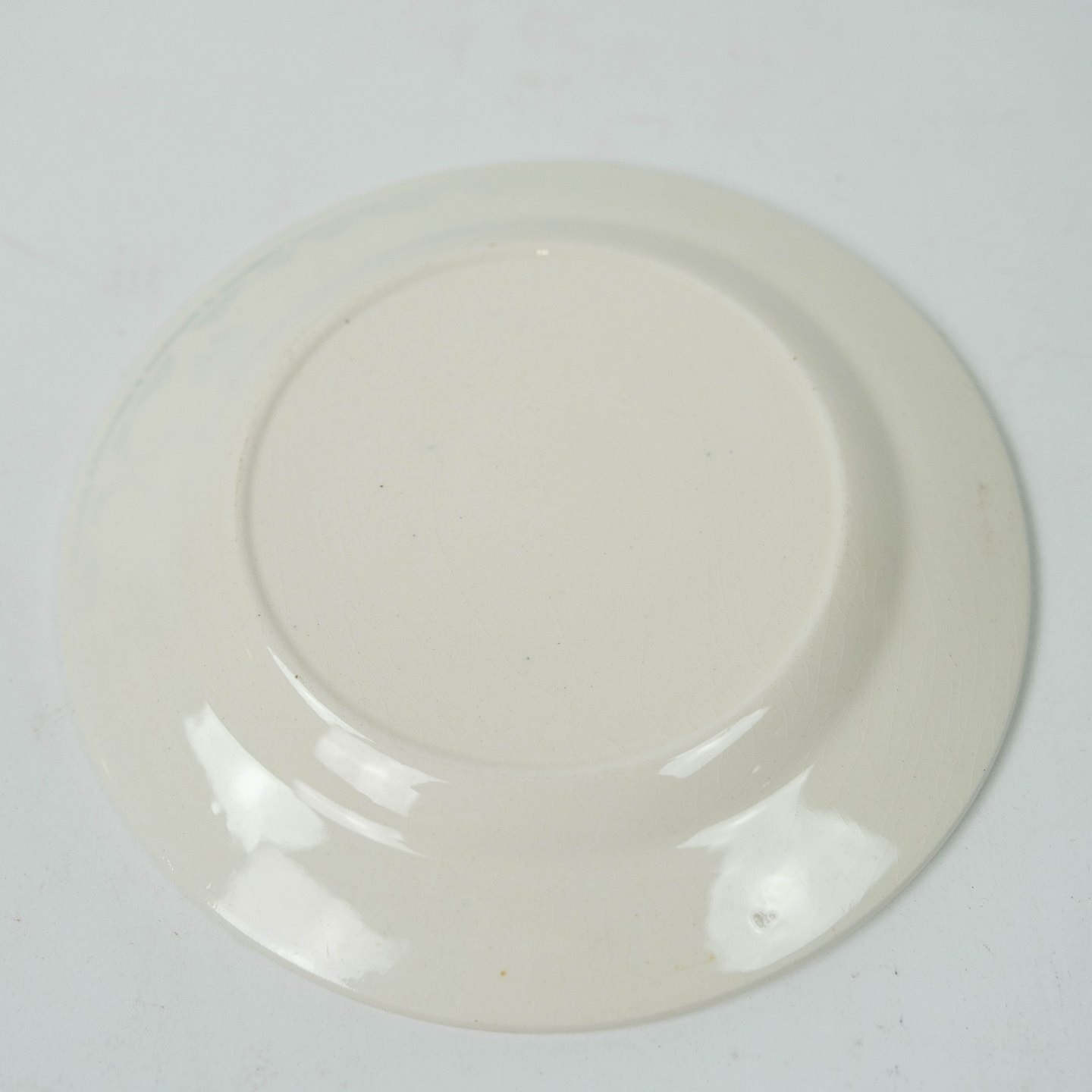 Frokosttallerken dekoreret med gul og blå farver fra 1960erne. Vi har 12 stk. på lager.