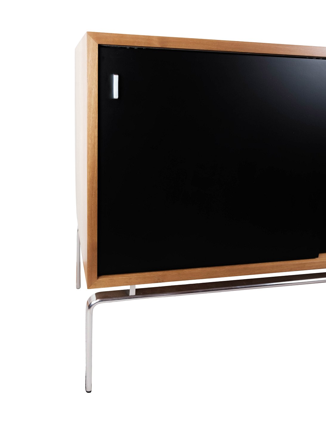 SoldSideboard, model FK 100, of Santon rosewood and black sliding doors, designed by Fabricius and Kastholm, and manufactured by Lange Production. The item is in great vintage condition.