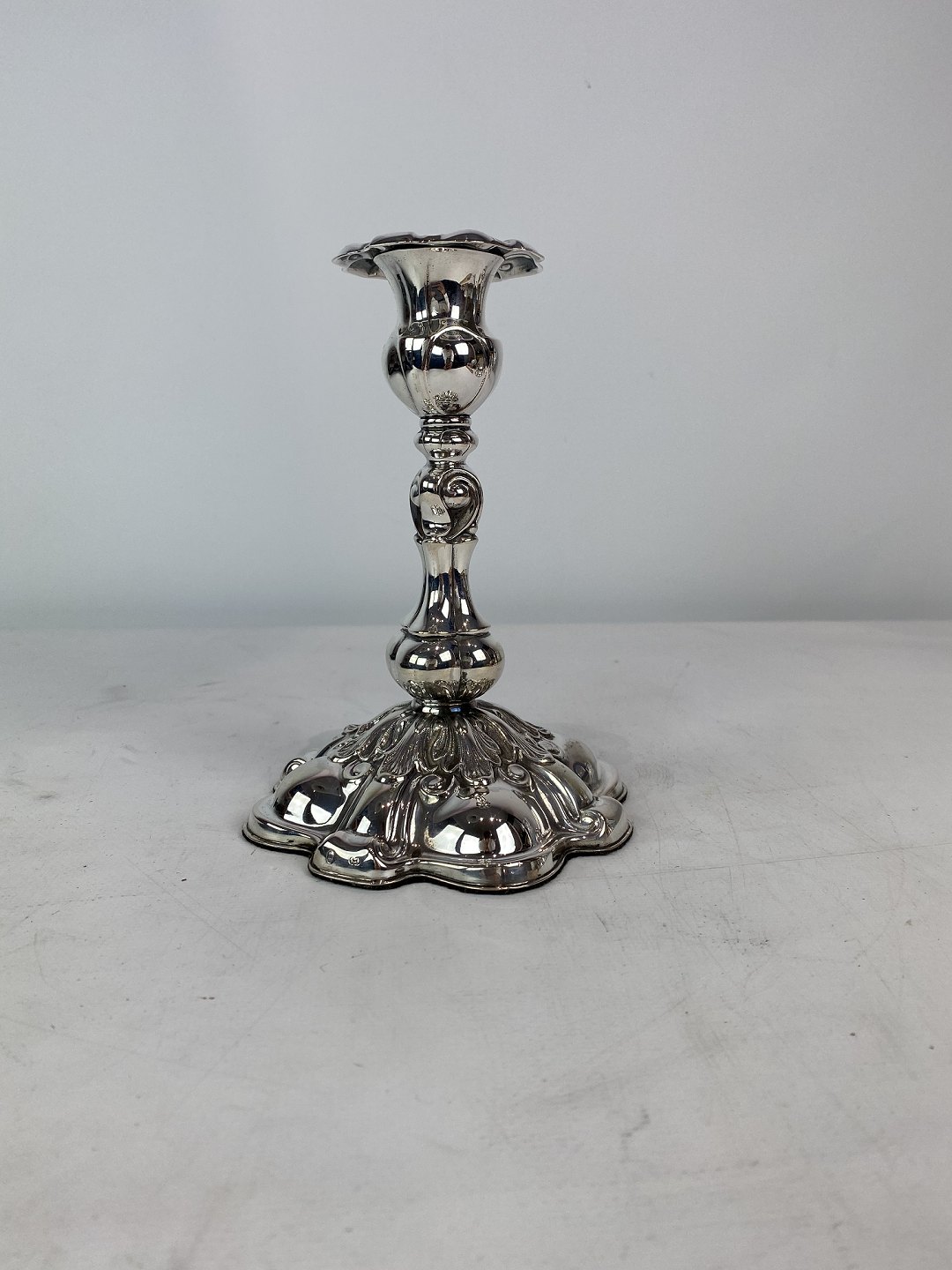 Set of two rococo candlesticks of hallmarked silver, in great antique condition from the 1920s.