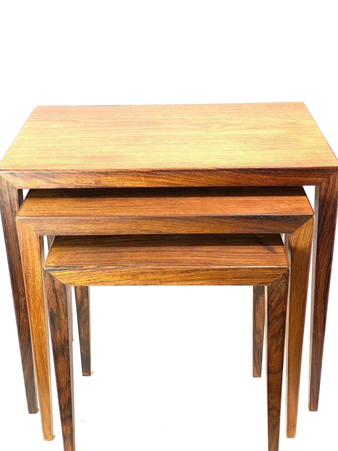SoldThese Nesting tables are a set of Danish design from the 1960s, created by Haslev Møbelfabrik and made of rosewood. Their sleek silhouette and natural wood finish add a touch of elegance and warmth to any room.