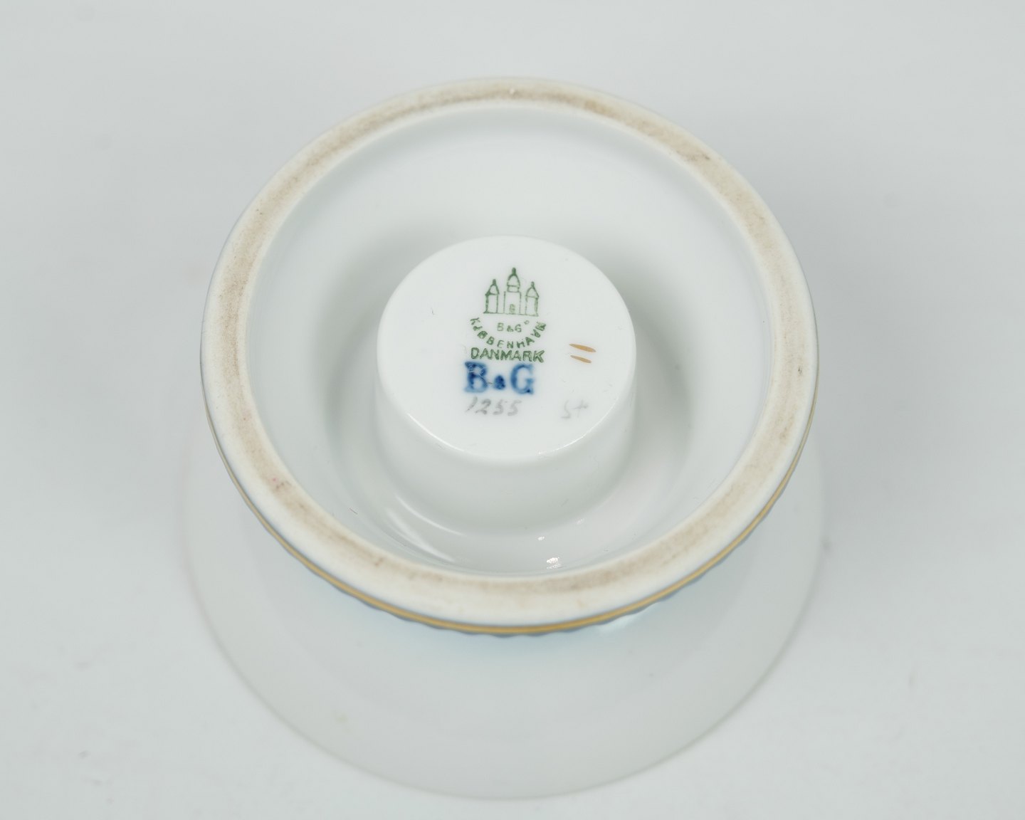Lysestage fra Bing & Grøndahl i mågestel. Står i meget fin stand med guldkant.