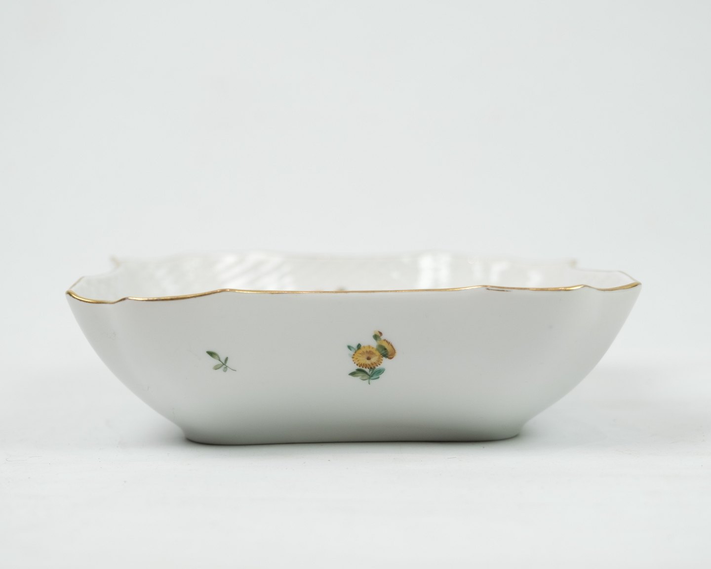 Kgl. firkantet skål oprindeligt brugt som kartoffel skål i mønstret saksisk blomst nr. 1522. Fremstår uden skader