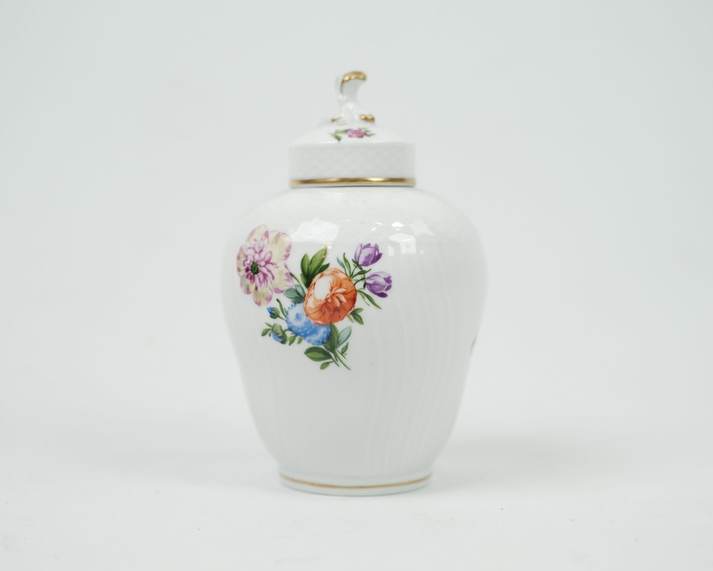 Kgl lågkrukke / bomberier krukke i mønstret saksisk blomst nr. 1684. Fremstår hel og uden skader