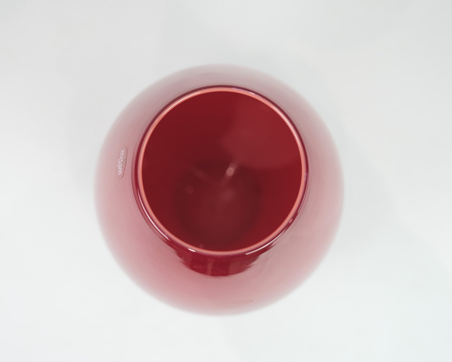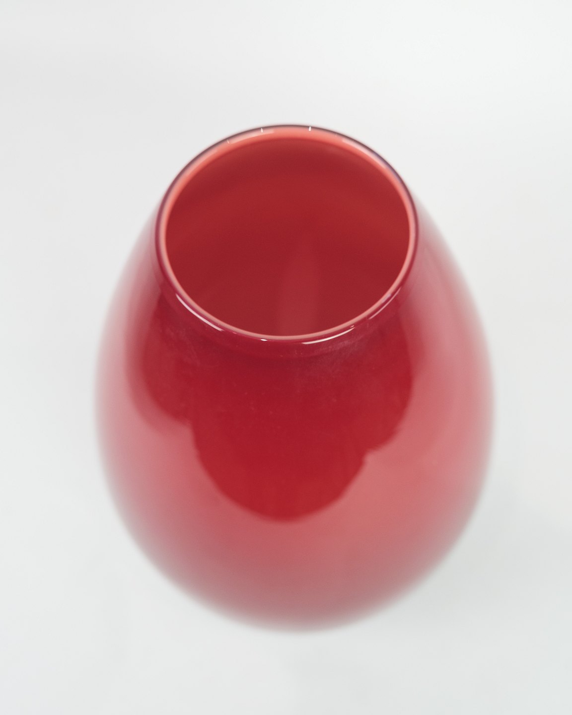 SolgtStor vase, model Cocoon, designet af Holmegaard mundblæste i mørkerød farve.