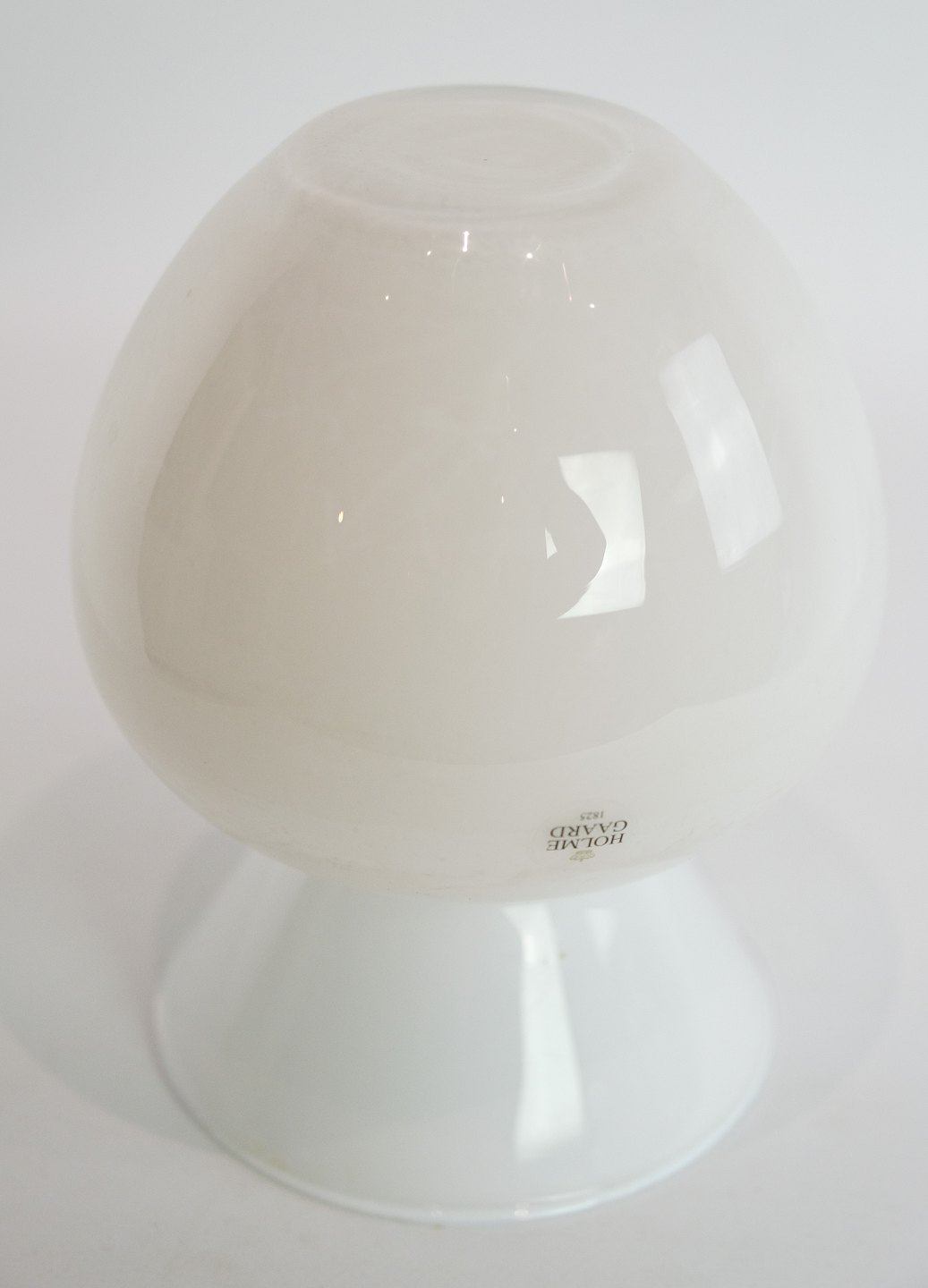 Hvid vase i glas produceret af Holmegaard fra omrking 1970'erne.