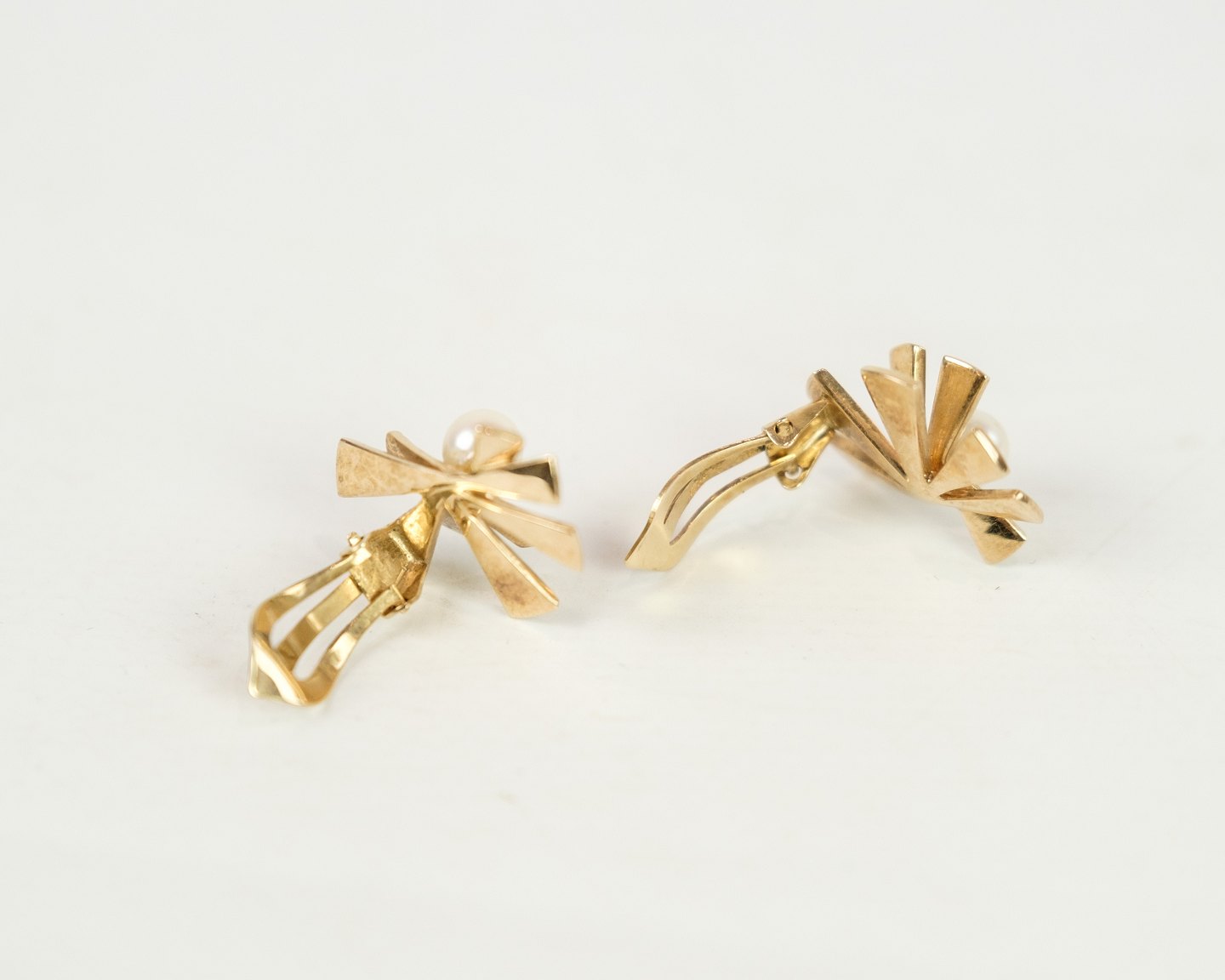 Vintage Ole Lynggaard øreclips af 14 karat guld med kultur perle af meget høj kvalitet. Begge øreclips er stemplet Ole L. 585.