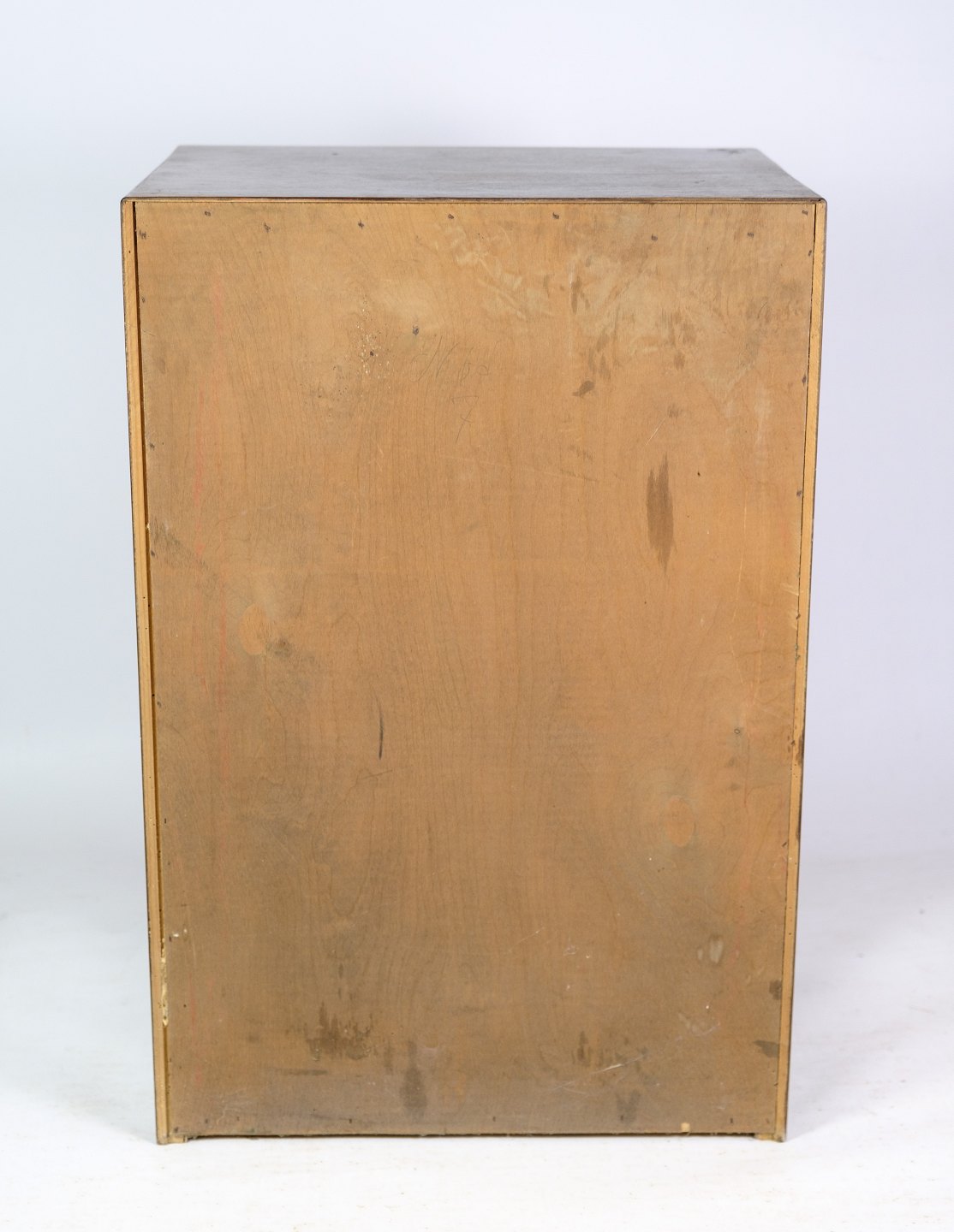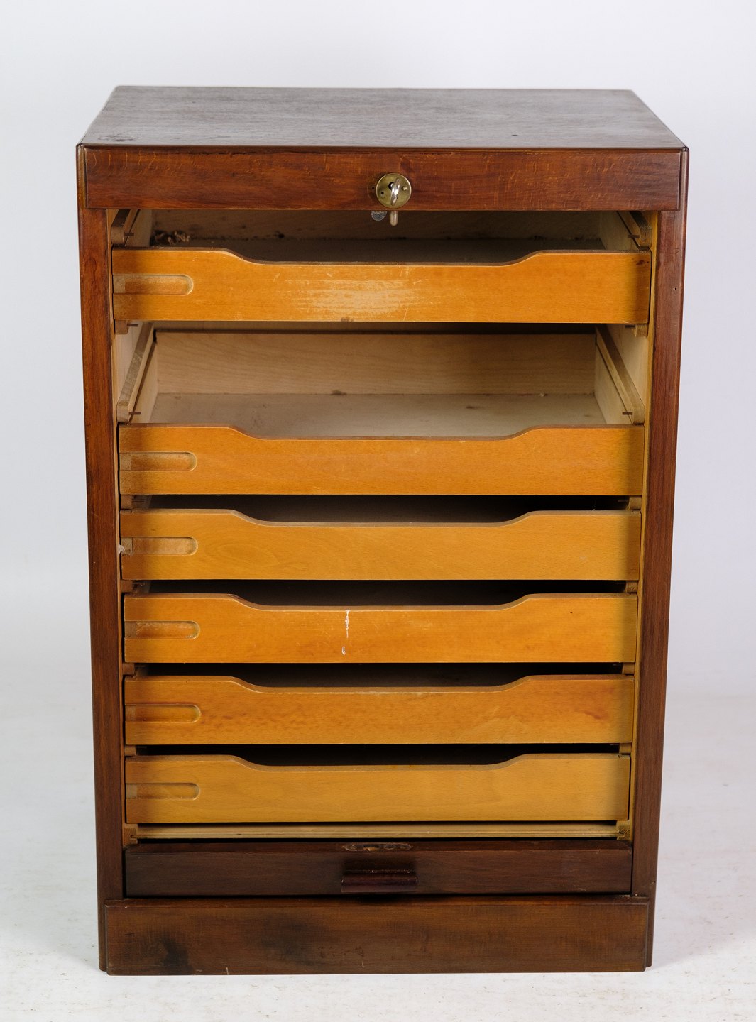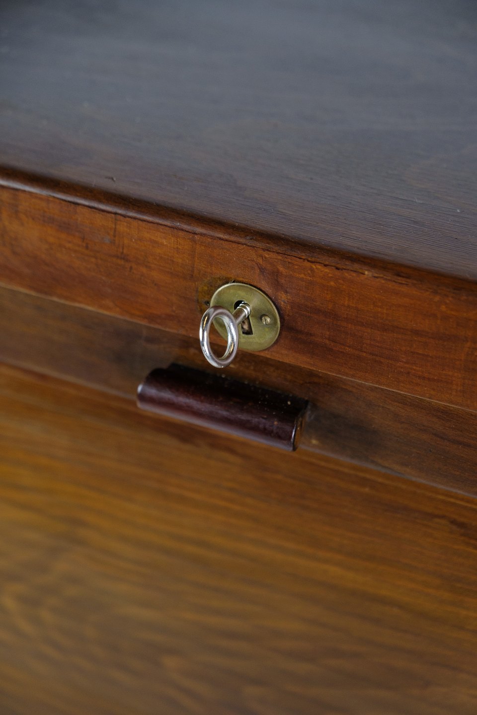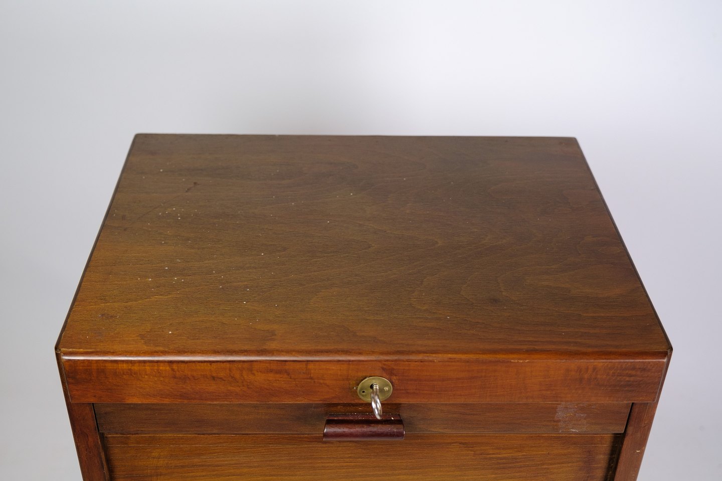 SolgtJalousi skab i poleret træ med skuffer fra omkring 1960'erne.