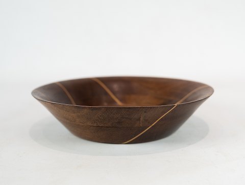 Skål af dansk design i teaktræ med stempel af Digsmed fra omkring år 1960'erne. Revnen vil blive repareret på vores egne værksted inden eventuel salg.