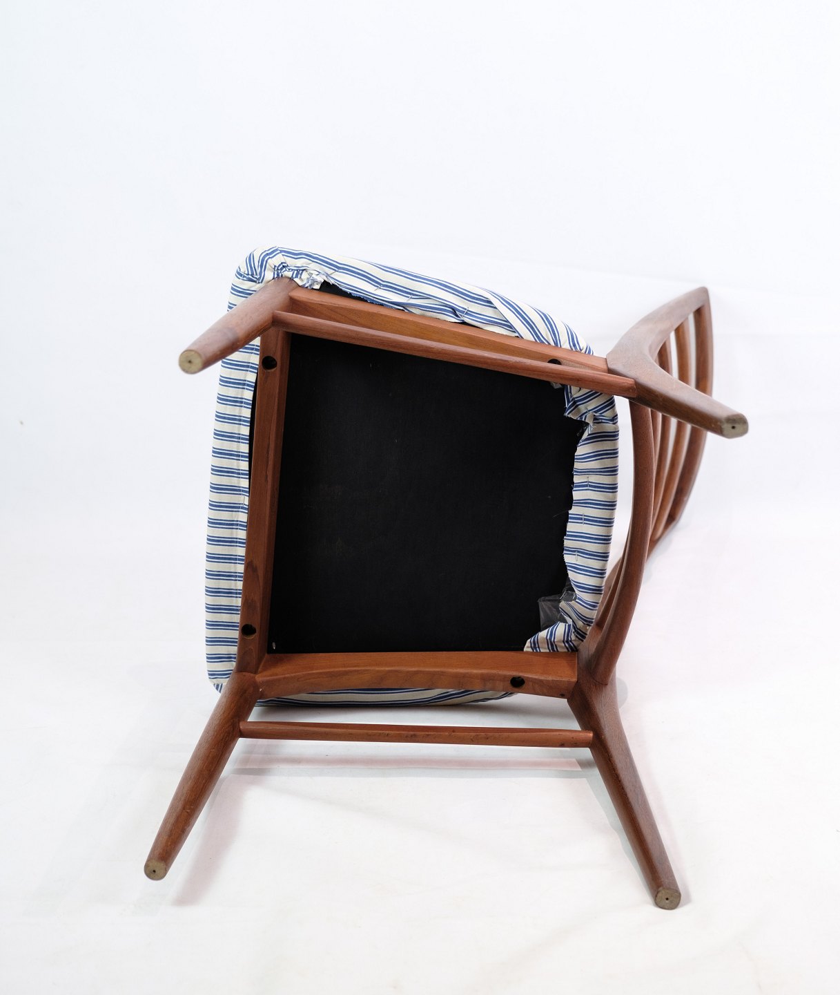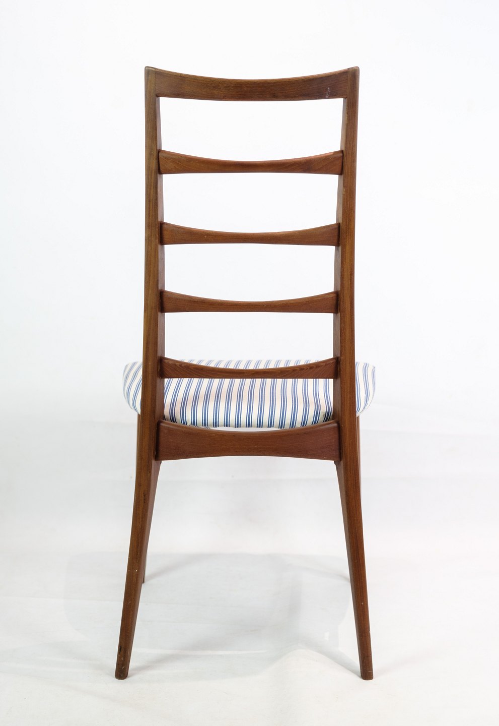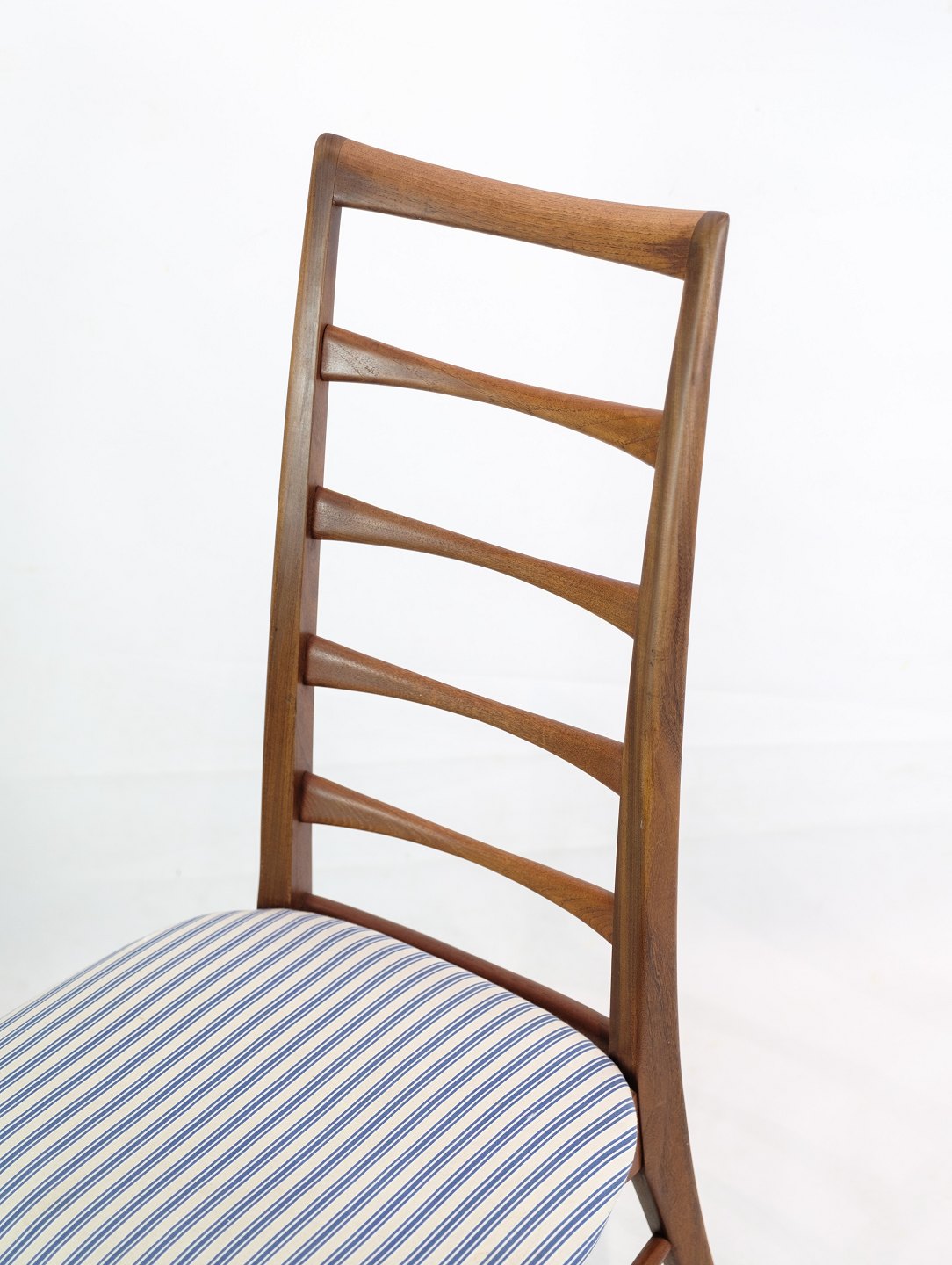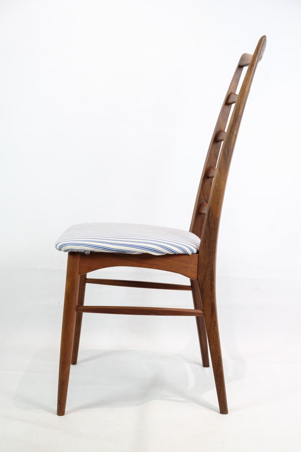 Set of four chairs, model "Lis", designed by Niels Koefoed in teak from around the 1960s. The chairs are upholstered with nice striped fabric.