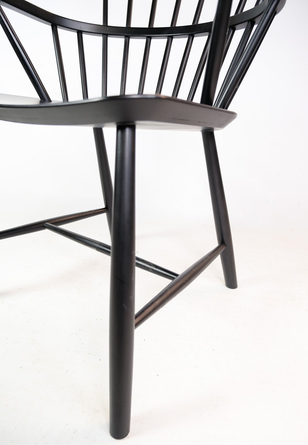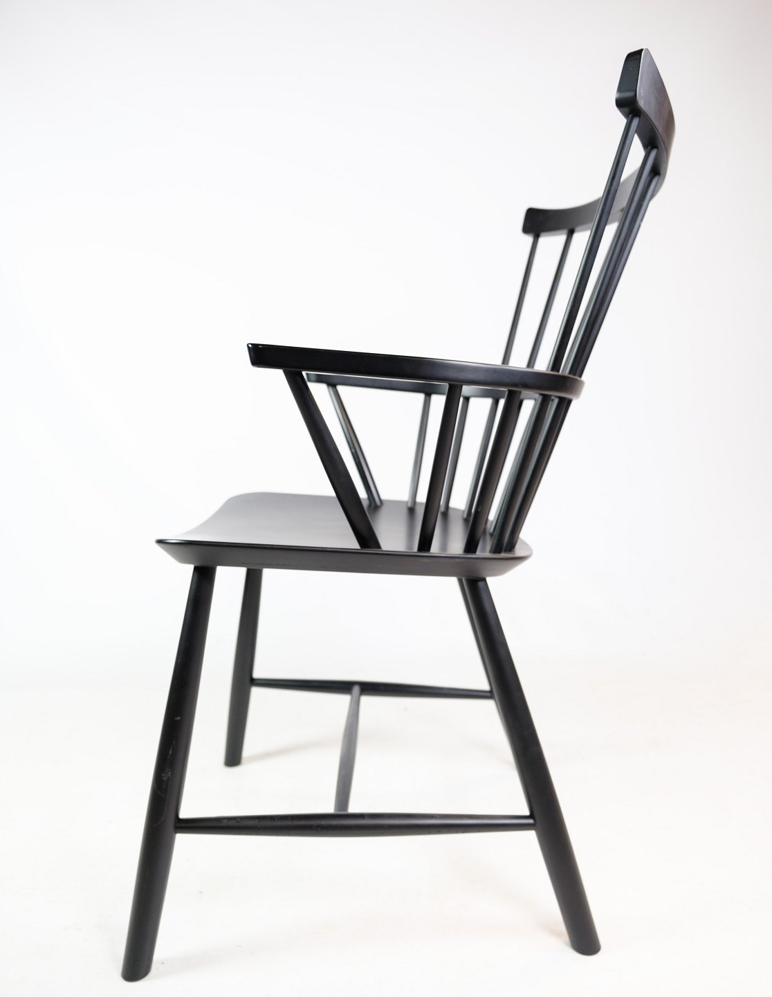 SoldDining table chairs, model J52B, black stained in the wood color beech, manufactured by FDB Møbler.