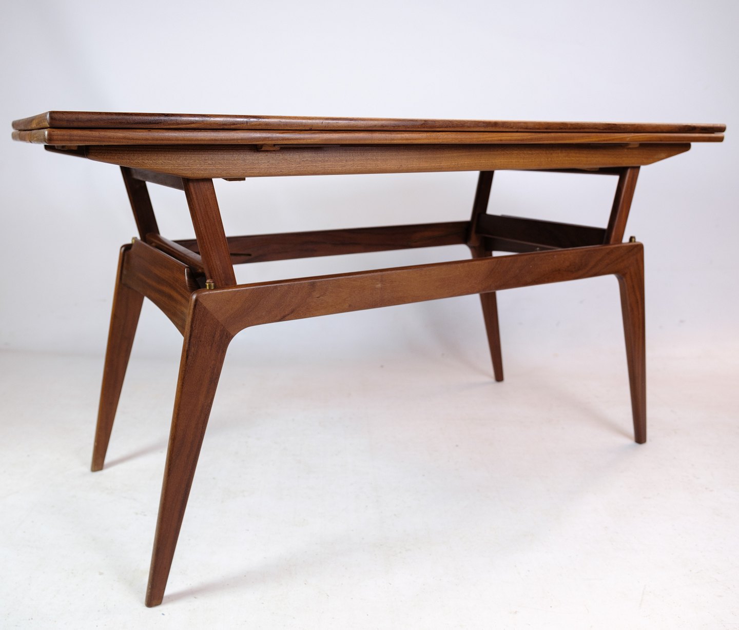 SolgtSofabord / spisebord i træsorten teaktræ ofte kaldet Københavner bord fremstillet af dansk møbelproducent fra omkring 1960'erne.