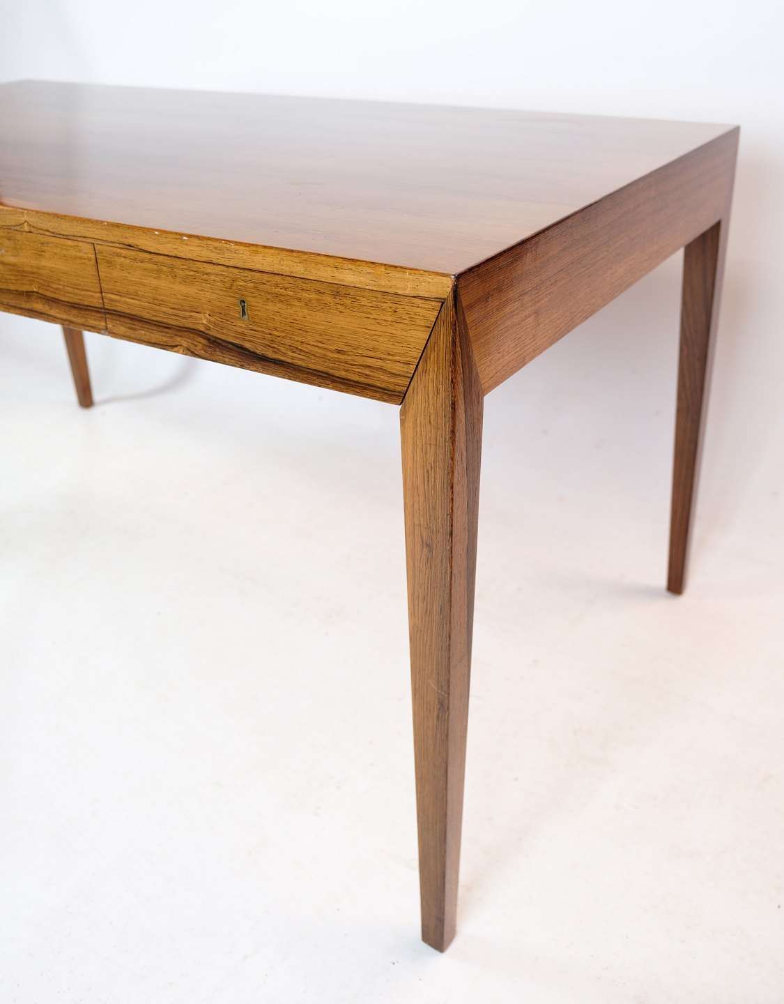 SoldThe desk in rosewood, designed by Severin Hansen and manufactured by Haslev Møbelfabrik in 1960, is an example of Danish furniture art at its finest.