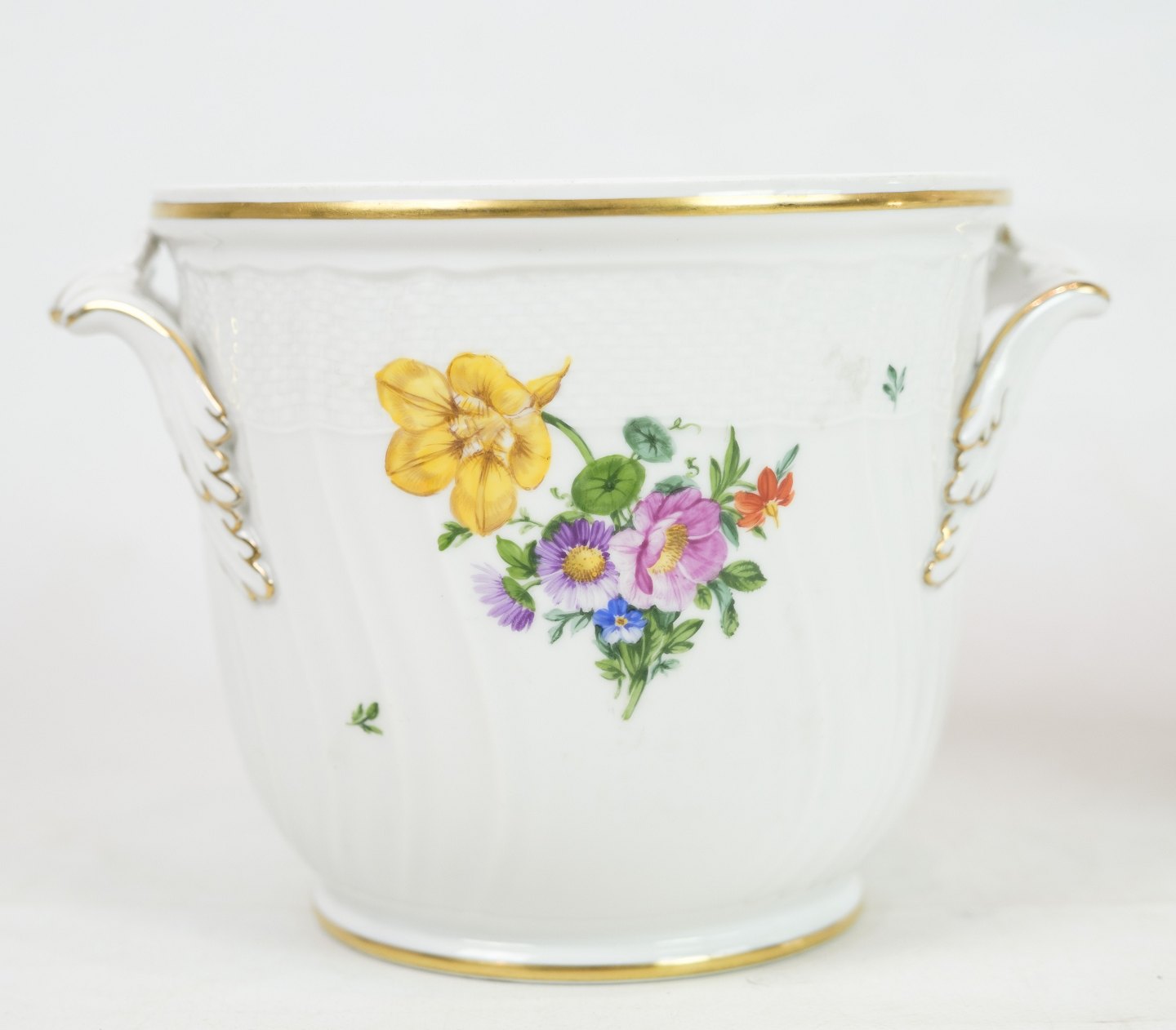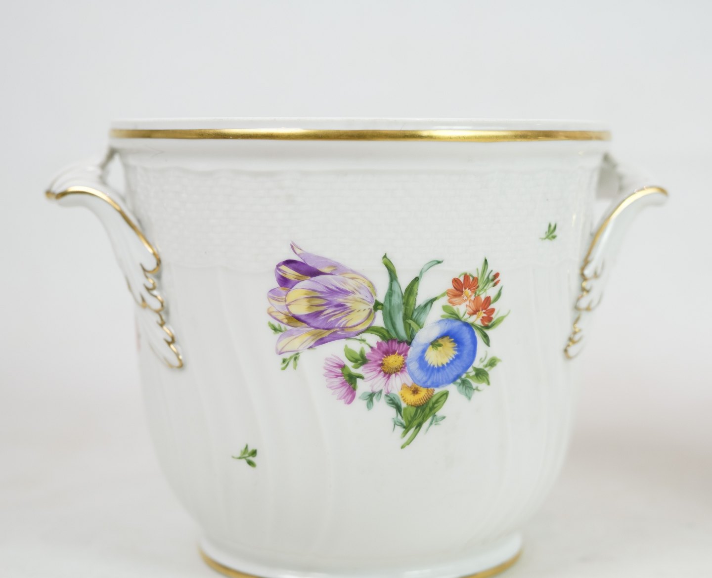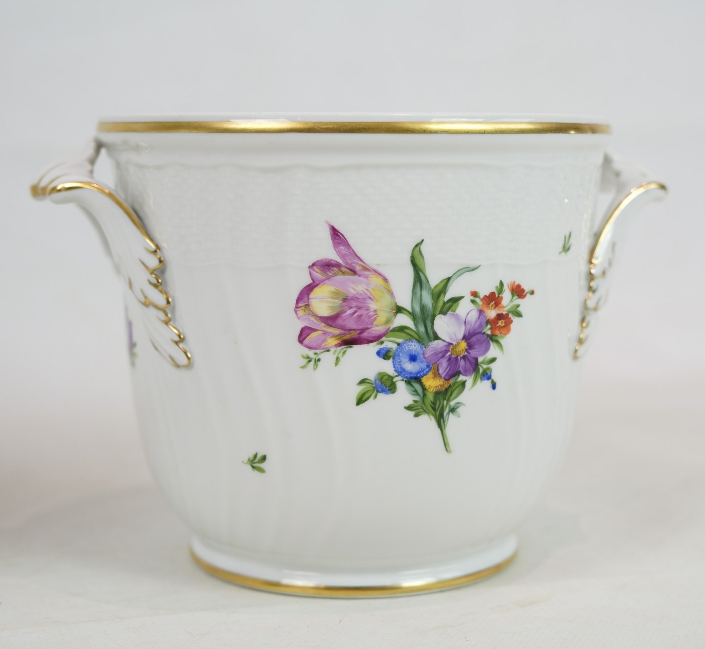 Royal Copenhagen champagnekøler i mønstret Let Saksisk Blomst fra 1930. Den er også brugbar som urtepotte og er i meget fin stand. nr. 493 / 1703. 1 sortering.