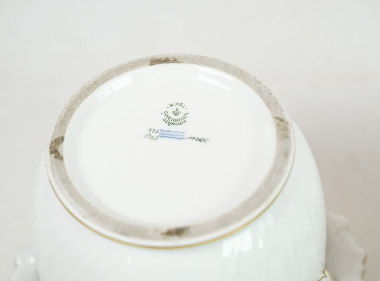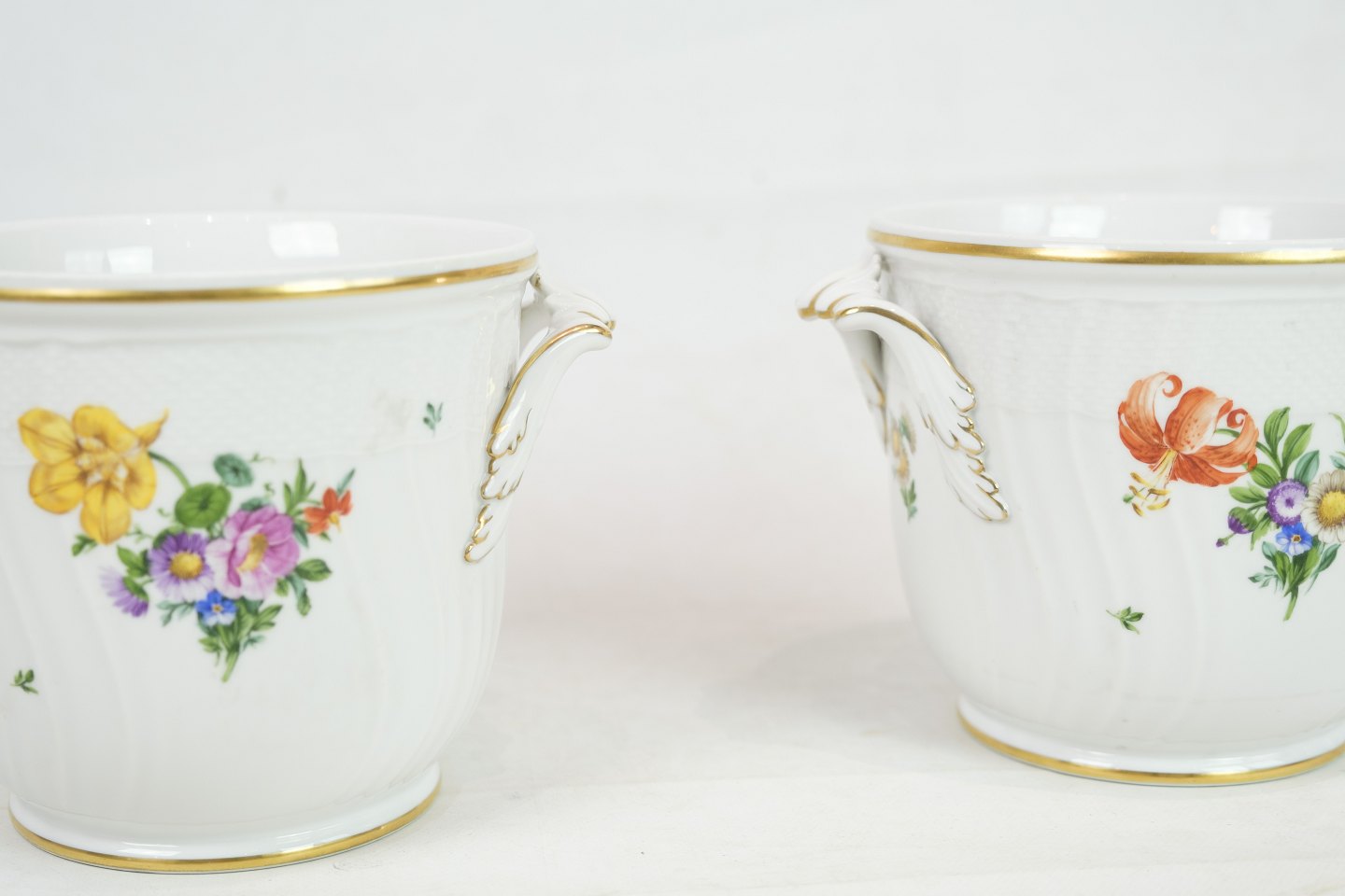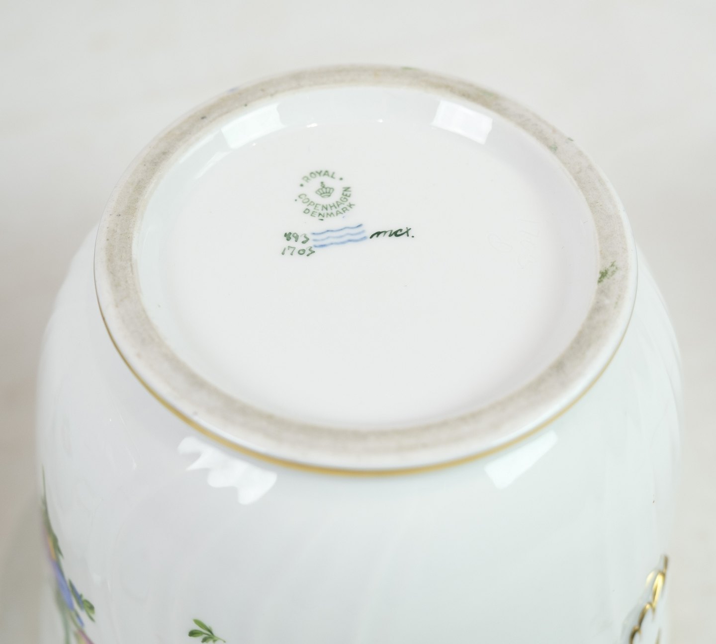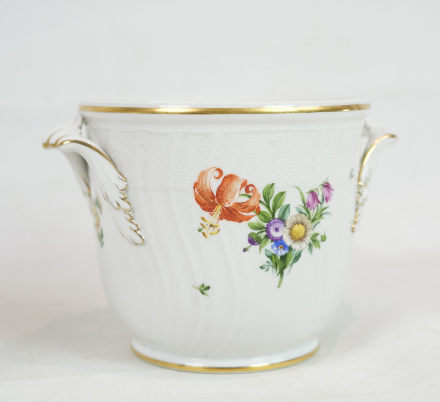 Royal Copenhagen champagnekøler i mønstret Let Saksisk Blomst fra 1930. Den er også brugbar som urtepotte og er i meget fin stand. nr. 493 / 1703. 1 sortering.
