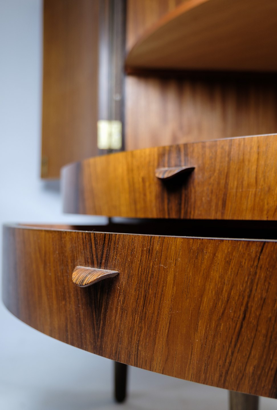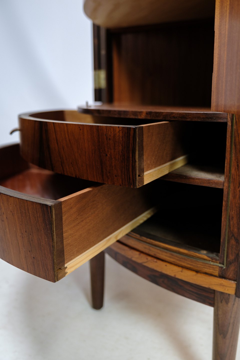 SoldThis rosewood corner cabinet from around the 1960s is a beautiful example of Danish furniture craftsmanship from the mid-20th century. The cabinet is designed with care and attention to detail and exudes elegance and timeless style.