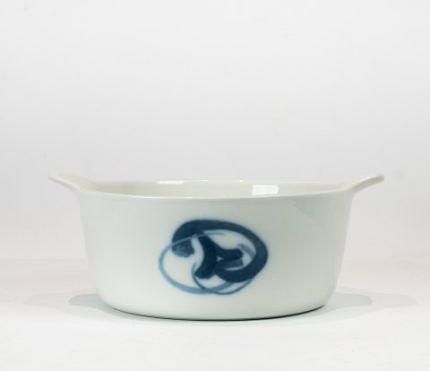 Hvid riflet ovalt fad fra Bing & Grøndahl fra omkring år 1950'erne.