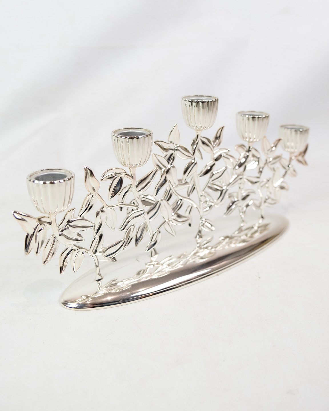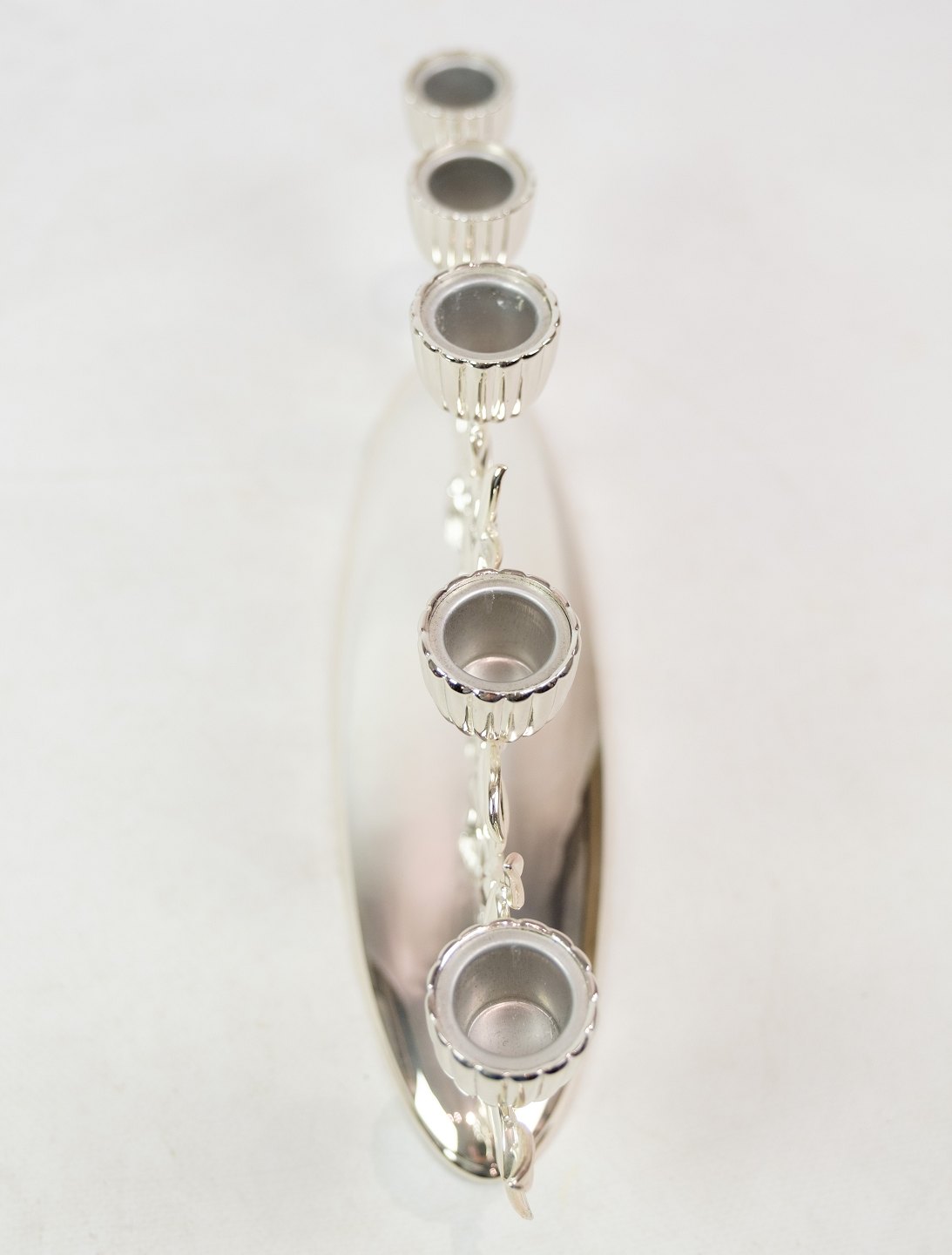 Fem armet forsølvet lysestage fra omkring år 1940'erne. En rigtig fin, samt unik ting til hjemmet, som skaber hygge.