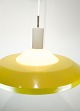 Stockholm pendant, yellow lacquer, opal glass, Louis Poulsen, 1960s.