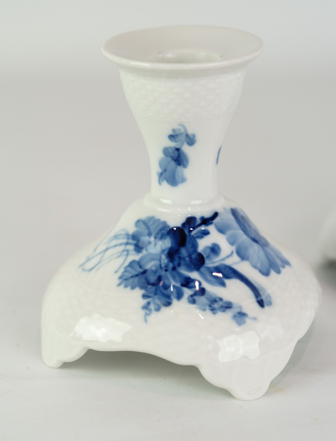 A pair of candlesticks in a patterned blue flower swooped by Royal Copenhagen no. 1711
