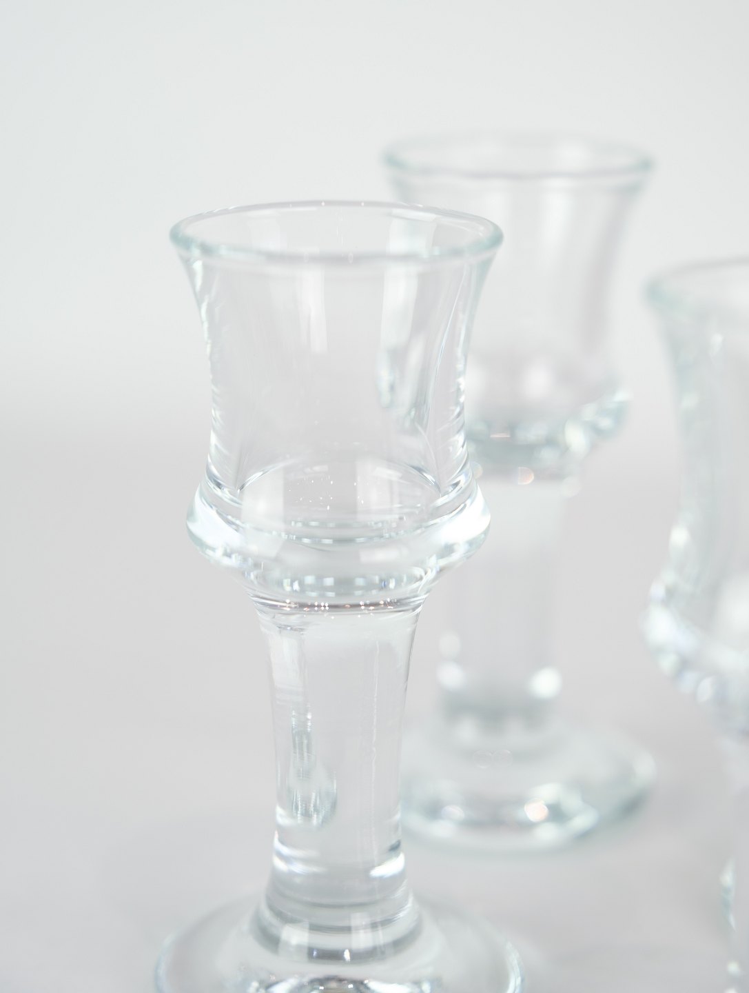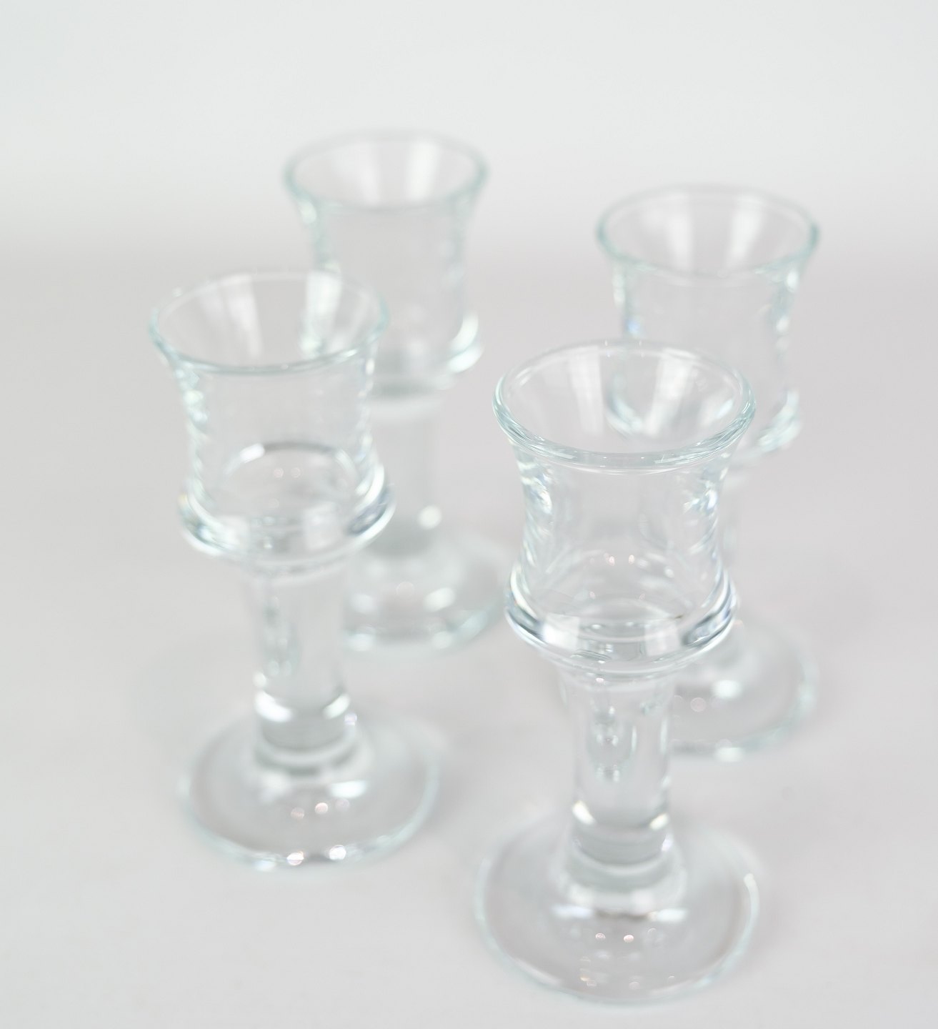 Tivoli glas fra Holmegaard med størrelse og brugt som snapse glas.