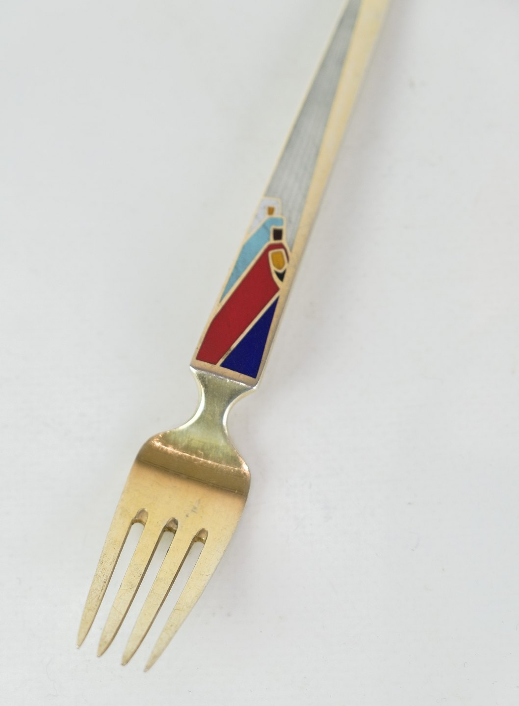 Julegaflen 1958 Titel "Østens vise mænd" Forgyldt sølv med emaljedekoration designet af kunstneren Karl Gustav Hansen hertil produceret af Anton Michelsen.