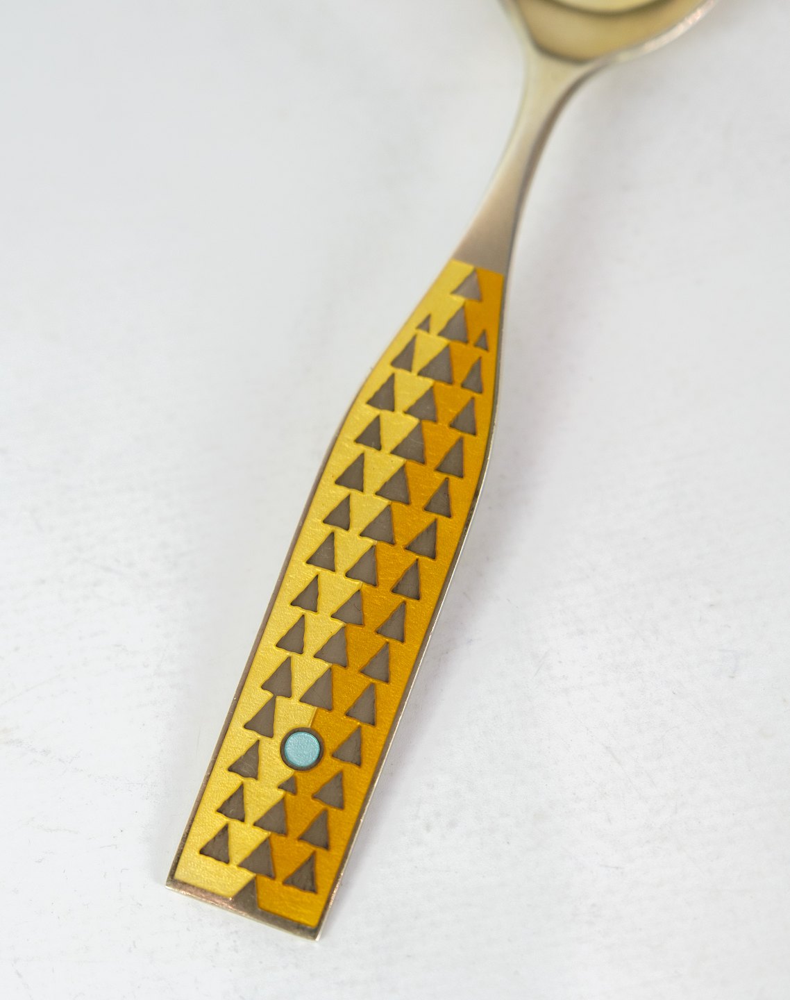 Anton Michelsen julegaffel i forgyldt sølv med motiv af Vintersolhverv af kunstneren Rolf Middelboe i år 1960. Gaflen står i meget fin stand.