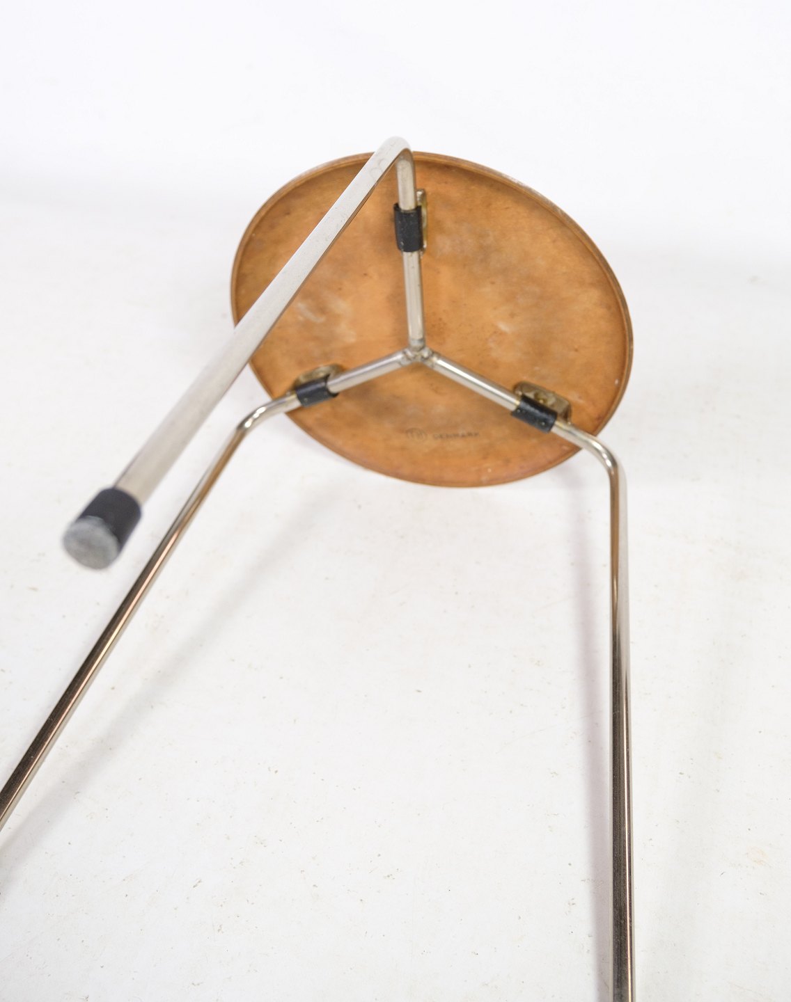 SolgtDenne elegante taburet med tre ben er designet af den berømte danske arkitekt og designer Arne Jacobsen og er fremstillet af Fritz Hansen i 1960'erne. Taburetten er en tidlig model og viser Arne Jacobsens talent for enkelhed og funktionalitet.