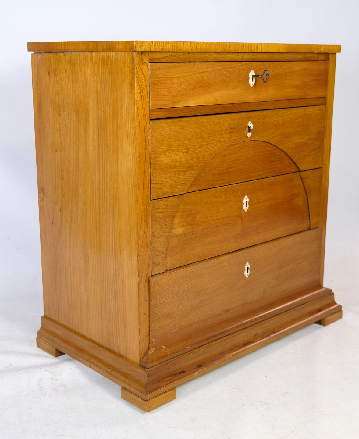 Chest of drawers in elm wood restored mock-polished Empia style from around the year 1840s.