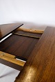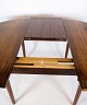 Teak dining table with built-in additional plate and round legs of Danish design from around the 1960s.