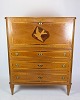Sekretær af lyst mahogni udsmykket med dekorationer af Intarsia af frugt træ og messing håndtag fra omkring 1810'erne.