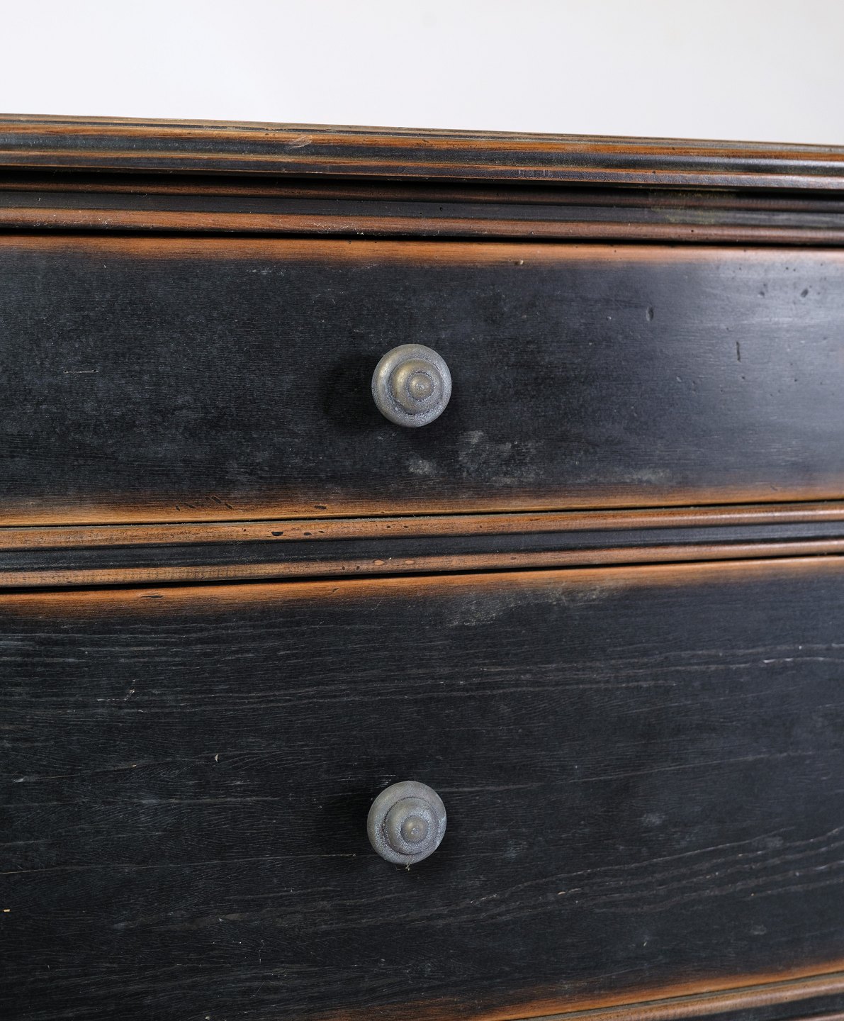Sort Bemalet kommode med buende front og 4 skuffer med patina fra omkring 1950'erne.