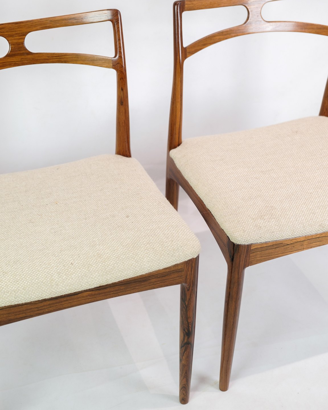 SolgtOplev tidløs elegance med dette sæt af to stole, model 94, skabt af den dygtige designer Johannes Andersen og fremstillet af Chr. Linnebergs Møbelfabrik omkring 1960'erne. Stolene, udført i palisandertræ, udstråler en subtil luksus og indfanger essensen af dansk møbelkunst fra midt i det 20. århundrede.
