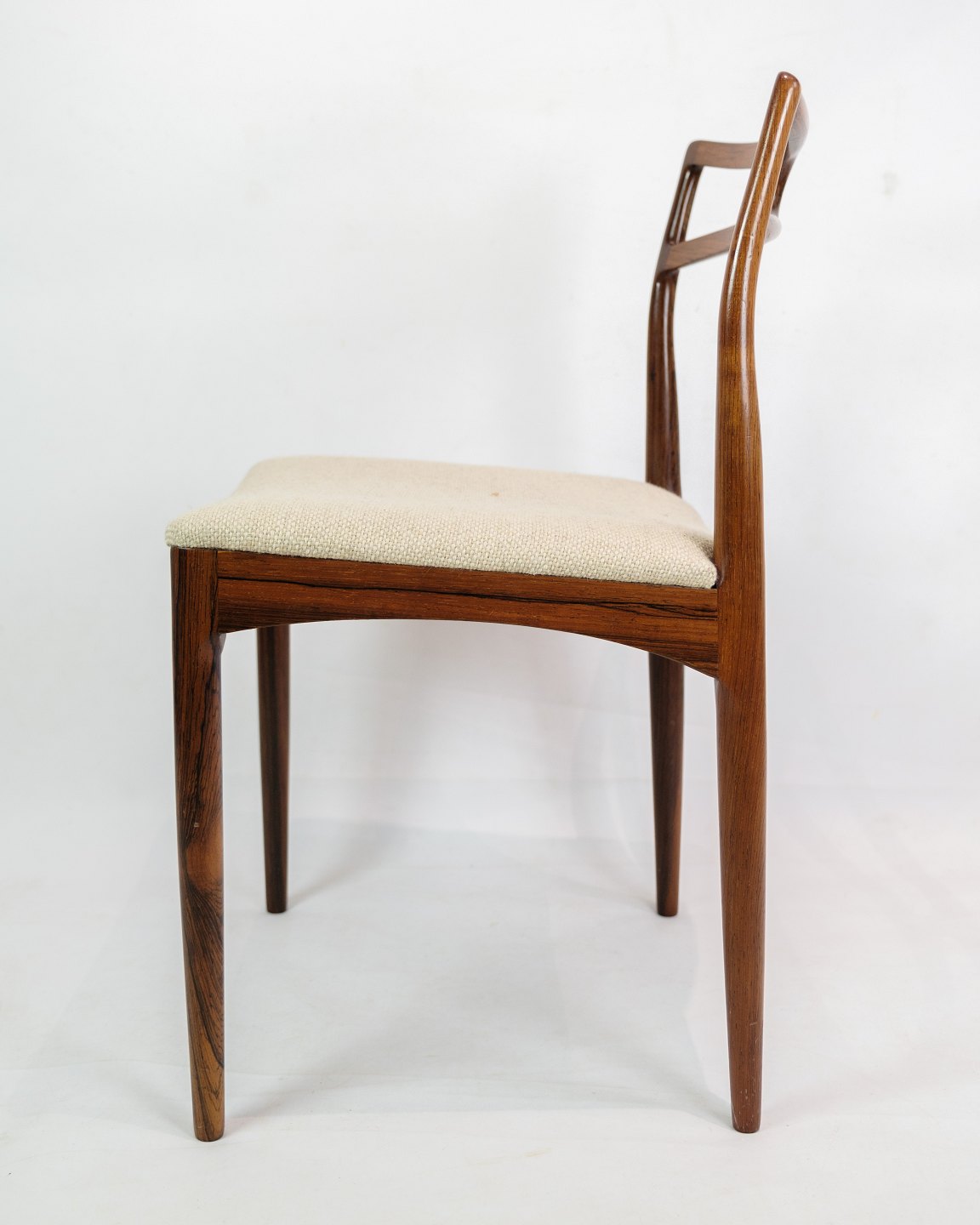 Andersens design fokuserer på enkelhed og funktionalitet uden at gå på kompromis med æstetik. Stolene er fremstillet med omhu og præcision og har en karakteristisk udstråling. Palisandertræet tilføjer en varm og dyb farvetone, der skaber en imponerende kontrast og tilføjer et strejf af natur til din indretning.