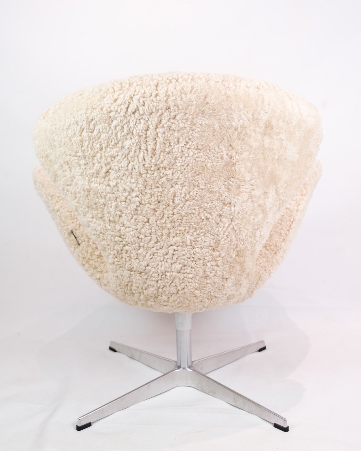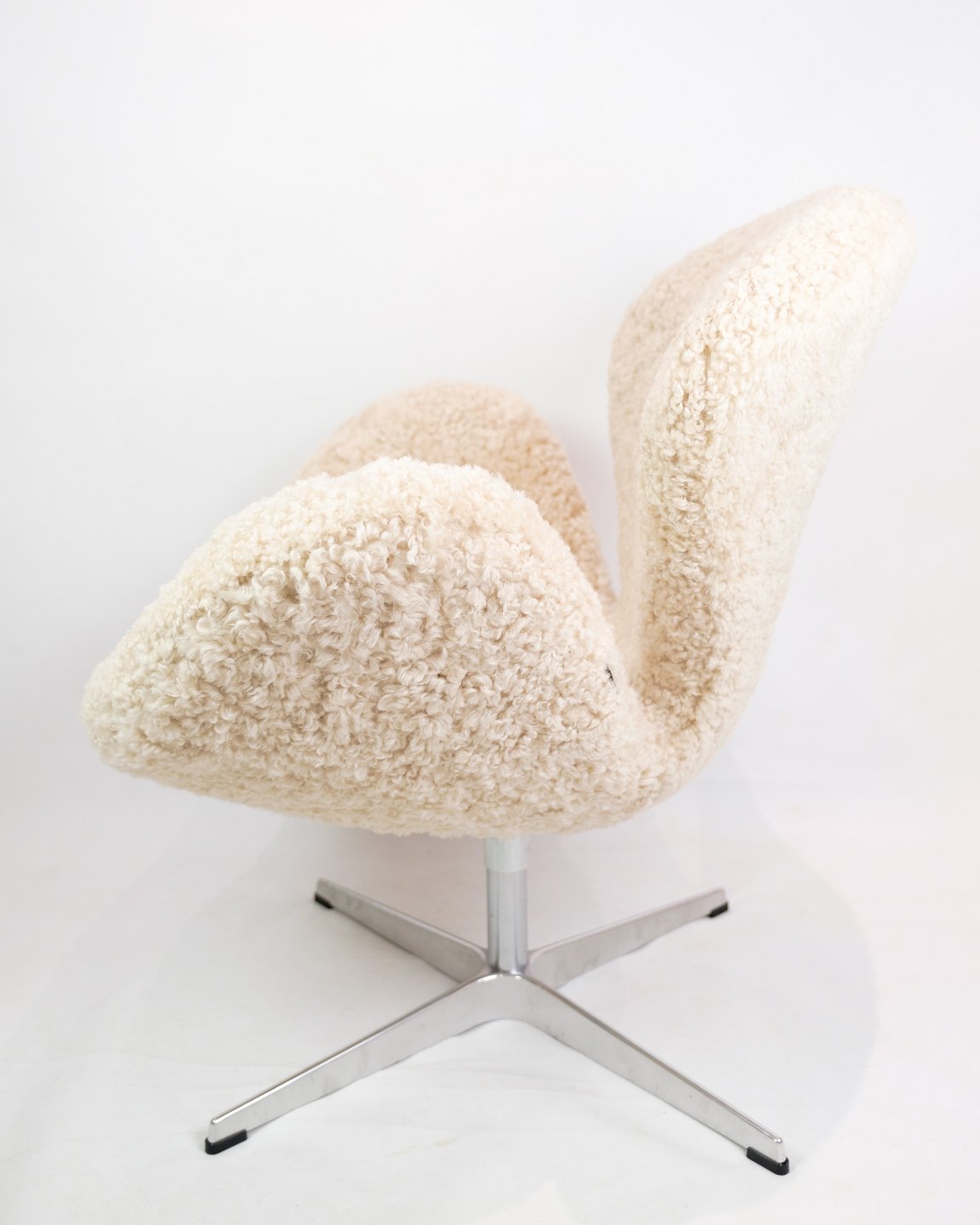 Upholstered with sheep's wool of the highest quality, "Svanen" offers a luxurious sitting experience. The chair is in perfect condition and its timeless design makes it a center of attention in any room.