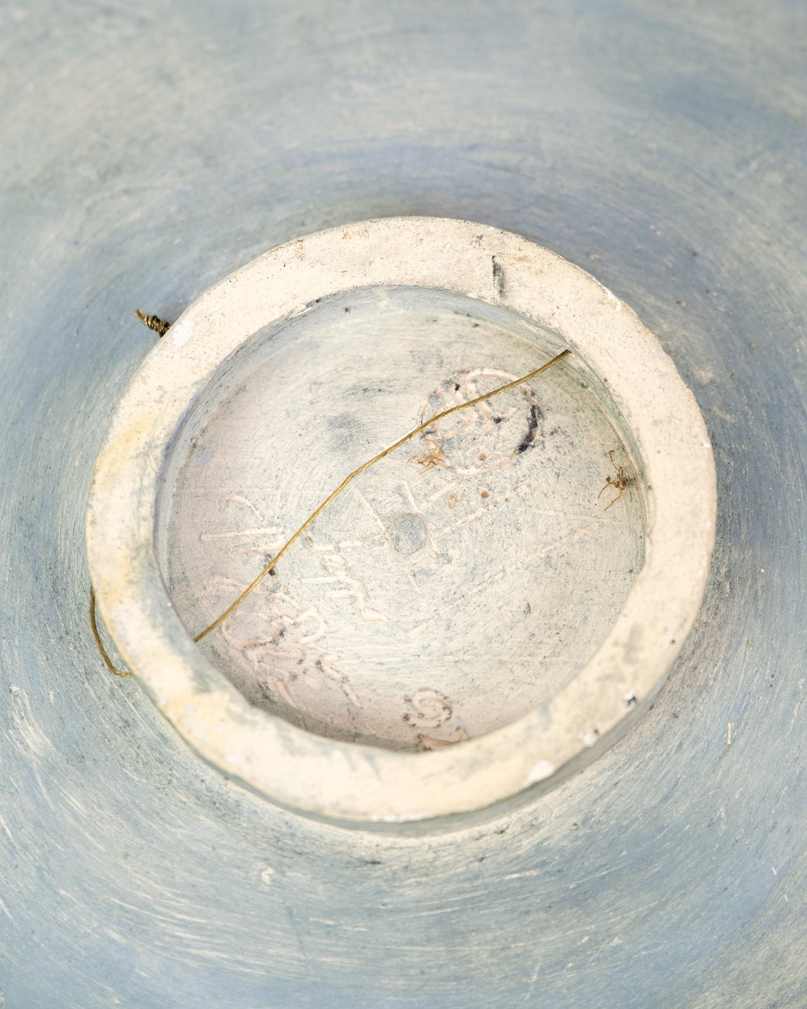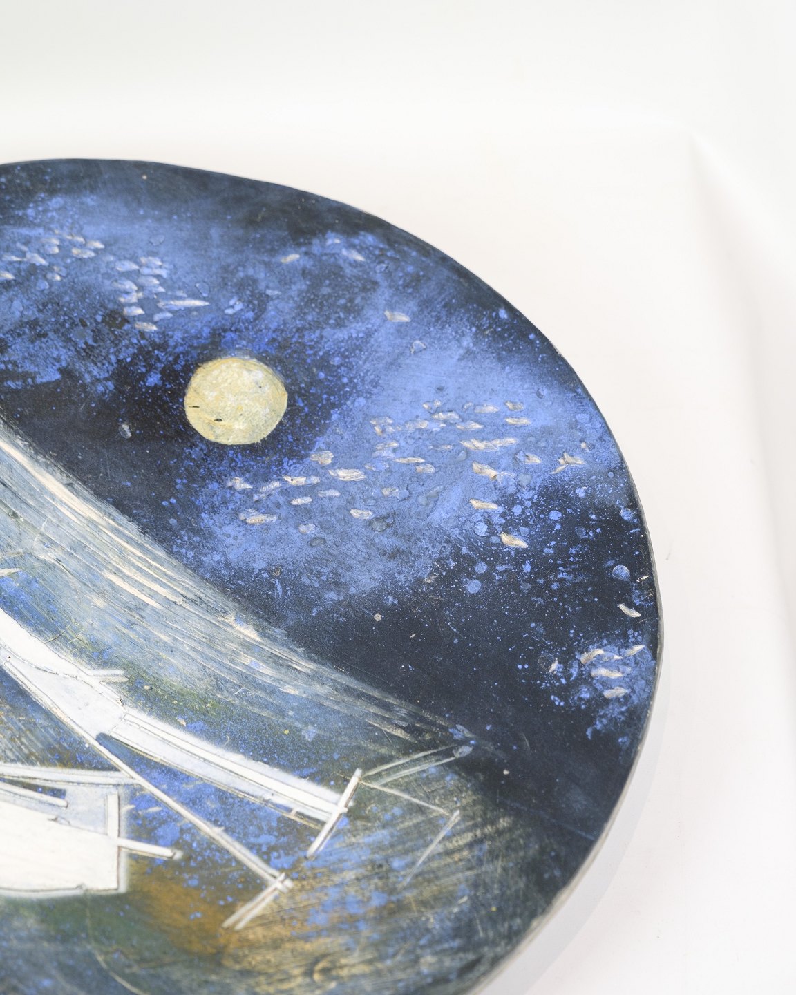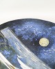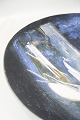 Unique ceramic dish by Jeppe Hagedorn-Olsen (1929–2011), who was a renowned Danish ceramist and painter, educated at the Royal Danish Academy of Fine Arts in Copenhagen and the ceramics school in Faenza, Italy. He was known for his innovative ceramic works, which ranged from tall, cylindrical sculptures to rustic dishes with organic shapes. His use of colors such as ochre, blue and black as well as non-figurative reliefs and friezes distinguish his style. Hagedorn-Olsen received several international awards and exhibited widely, both in Denmark and globally. His works balance precise forms and artistic rhythm, which has secured him a place as a significant figure within modern ceramics.