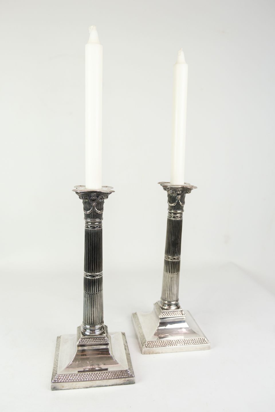 Sæt af 2 lysestager fremstillet i sterling sølv 925, designet i Louis seize-stil. Lysestagerne er dekoreret med en elegant perlekant. Engelsk oprindelse fra 1920erne.