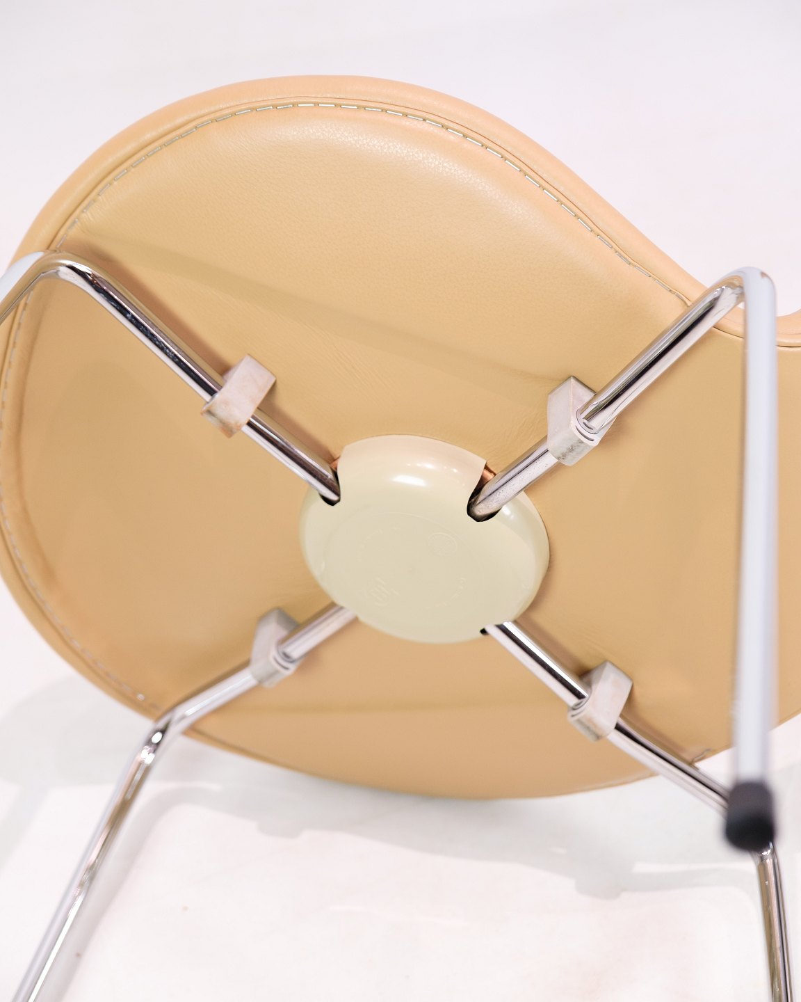 The Seven Chair model 3107, designed by Arne Jacobsen and produced by Fritz Hansen. Newly upholstered in cream-colored Elegance leather with a chrome frame.