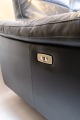 3-seater sofa made of black leather. The sofa is equipped with an adjustable backrest and legrest, which are operated electronically. It appears to be in good condition, and all electronics have been tested and are working correctly.