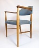 Dansk armstol i teaktræ med blåt stofsæde designet af Kurt Olsen i 1960’erne.
