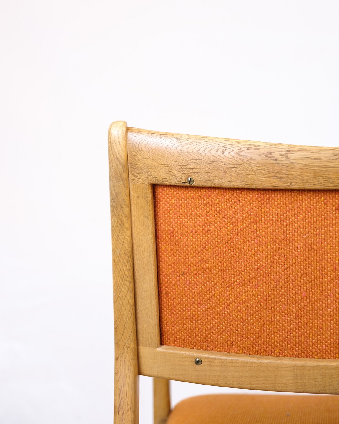 Armchair designed by Karl Erik Ekselius and produced by JOC Vetlanda in Sweden in the 1960s. The chair is made of solid oak with a light, shaped frame and fine details. The seat and back are upholstered in orange fabric.