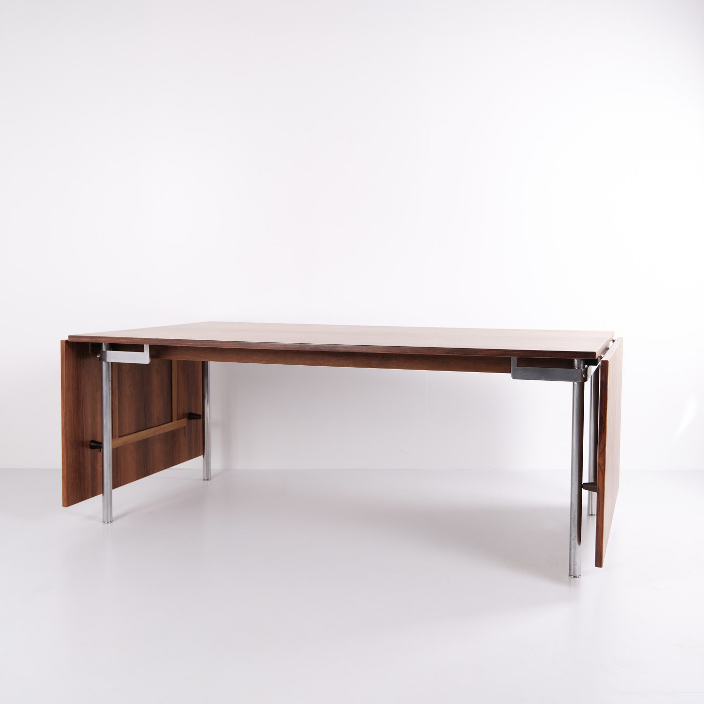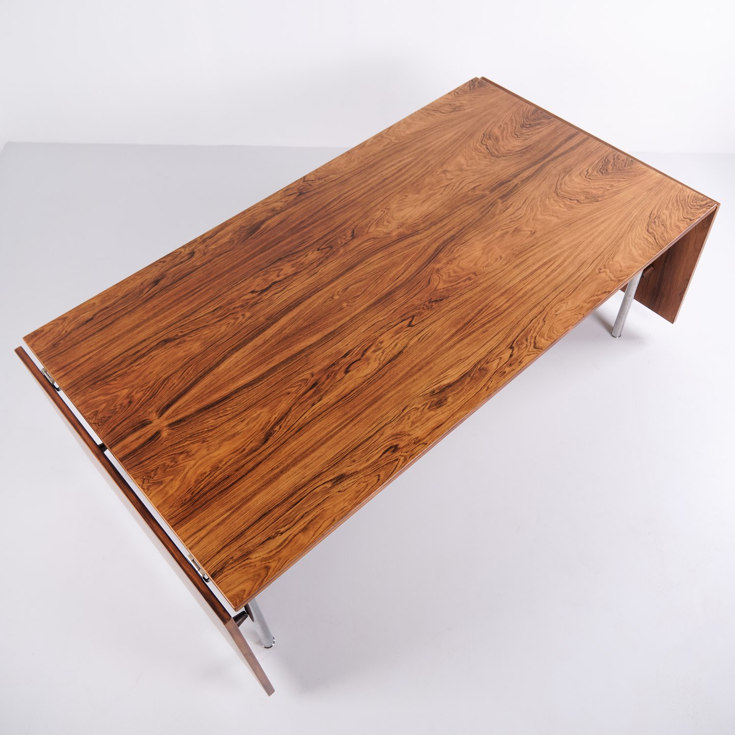 Kontakt os vedrørende prisSpisebord model AT 319 af Hans J. Wegner for Andreas Tuck. Riopalisander med stålben og 2 tillægsplader. Dansk design fra 1960’erne.