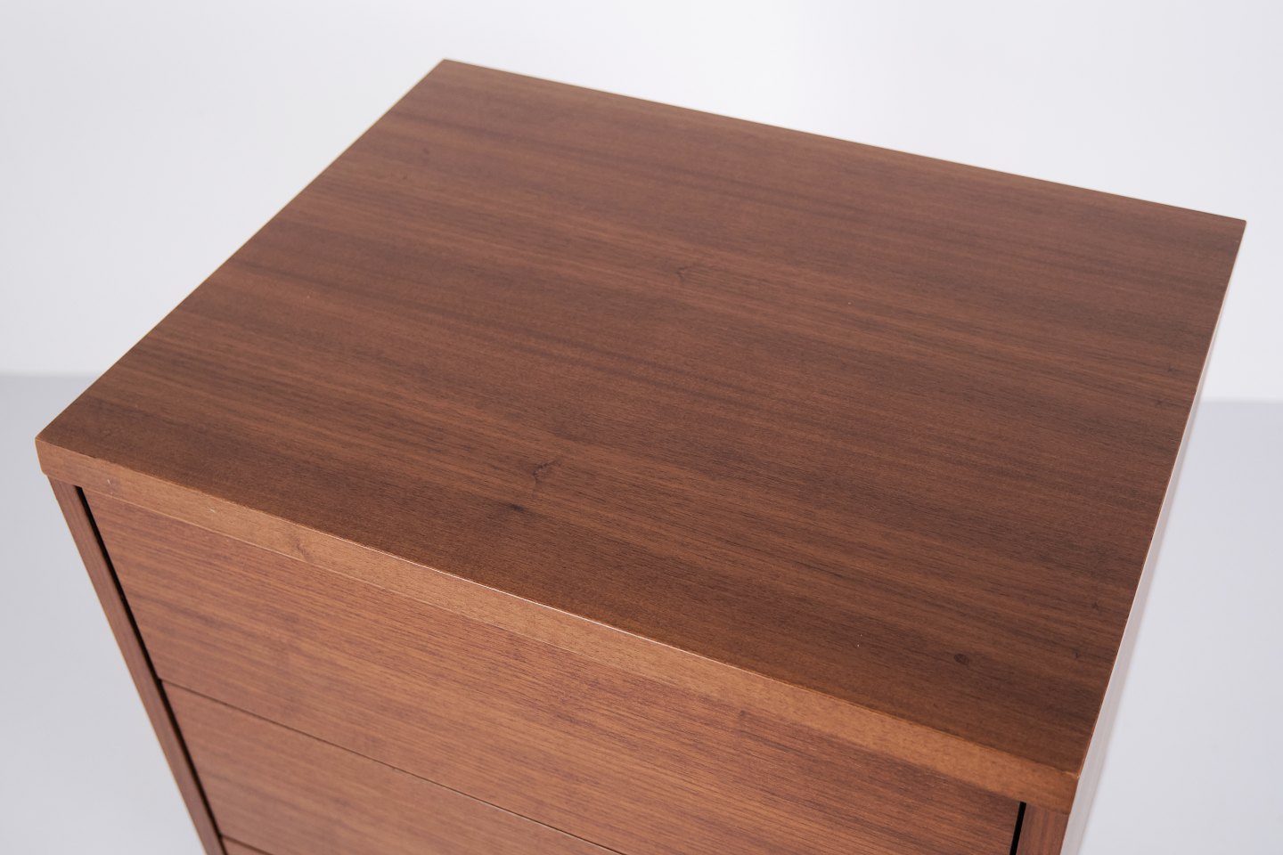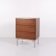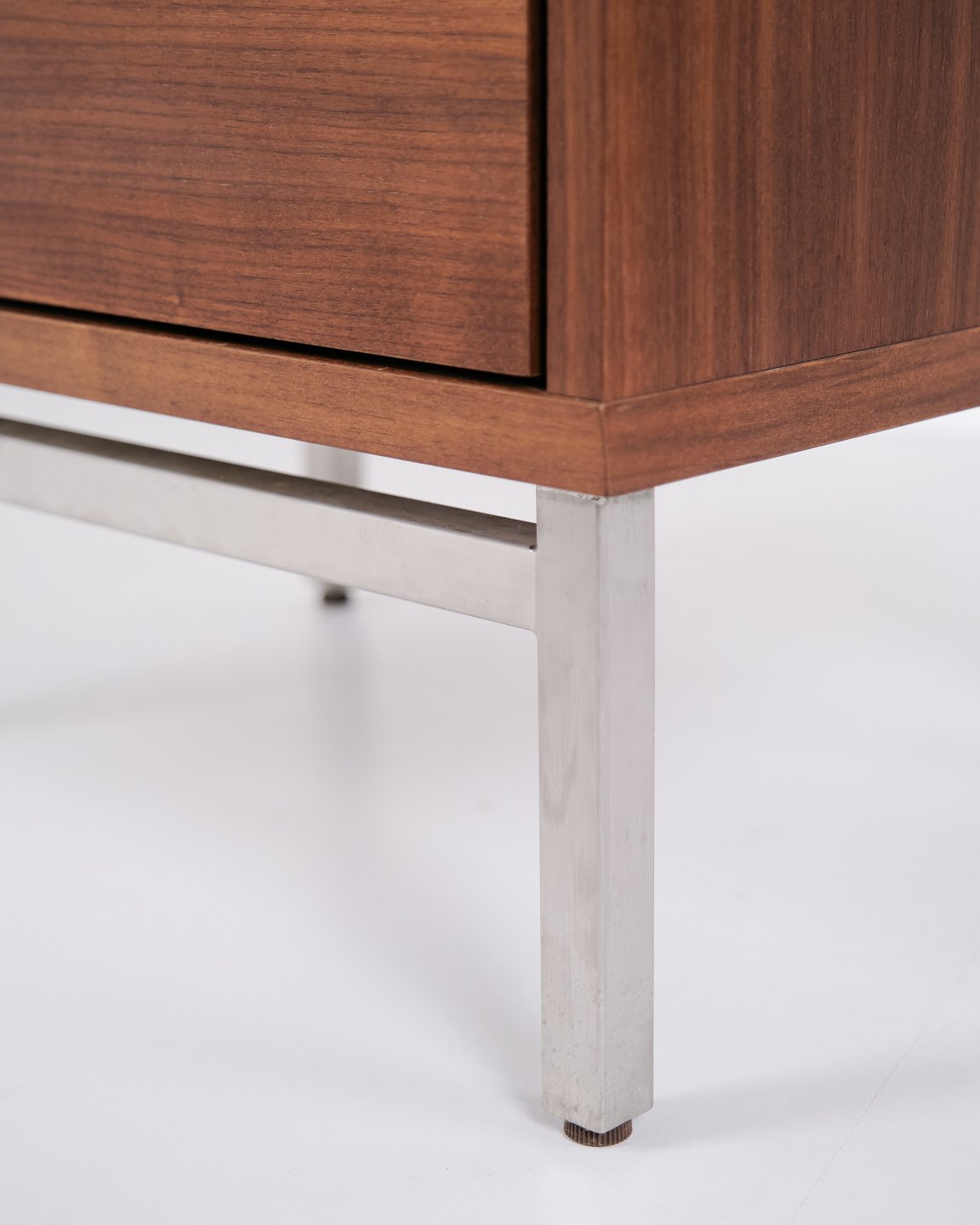 Skovby kommode i valnød med 3 skuffer og metalben. Moderne dansk møbel fra Skovby Møbelfabrik.