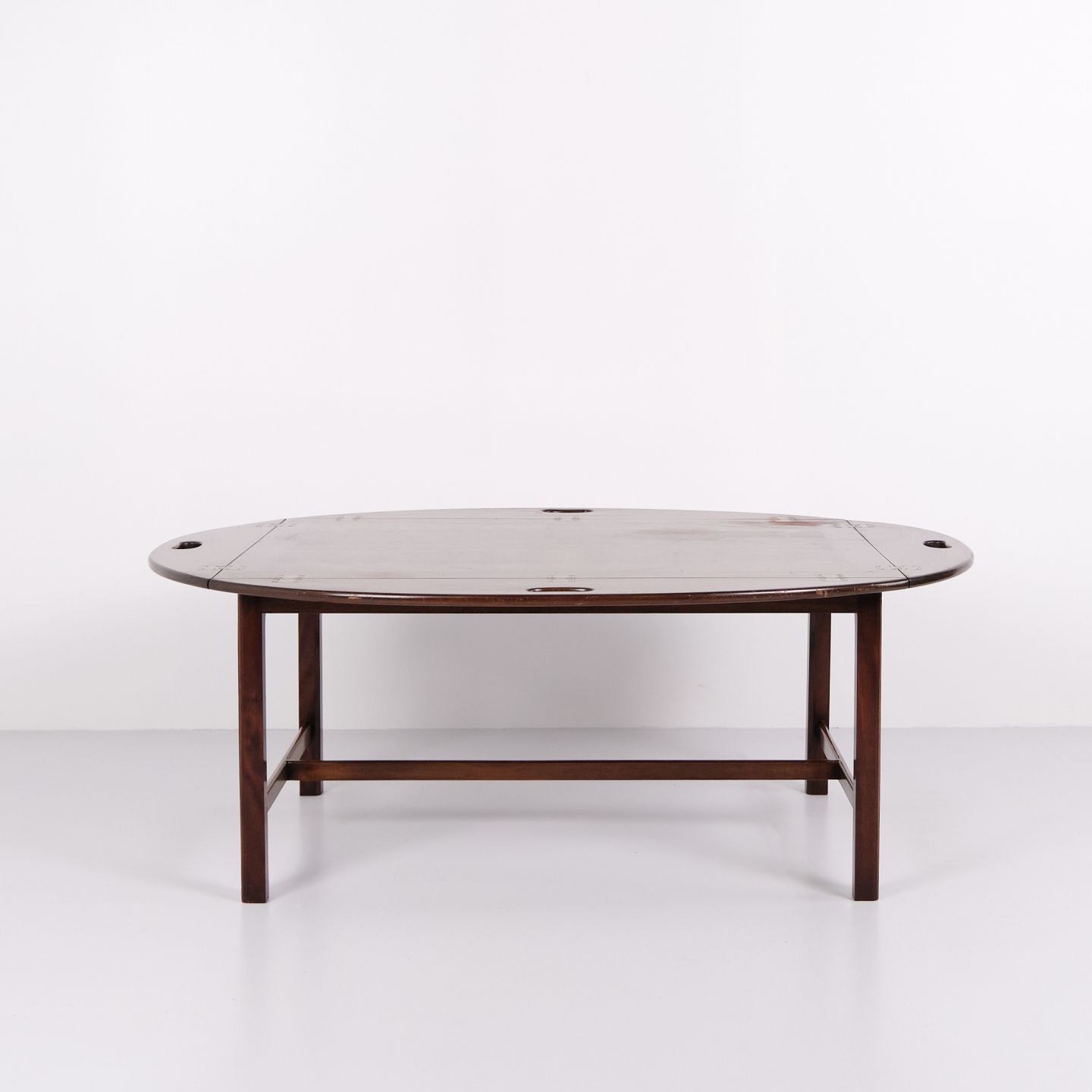 Butlerbord i mahogni med messingbeslag fra 1930’erne. Engelsk design med klassisk udtryk og funktionelt formsprog.