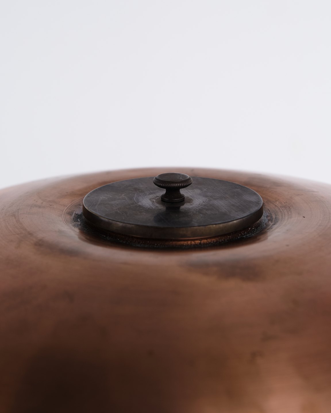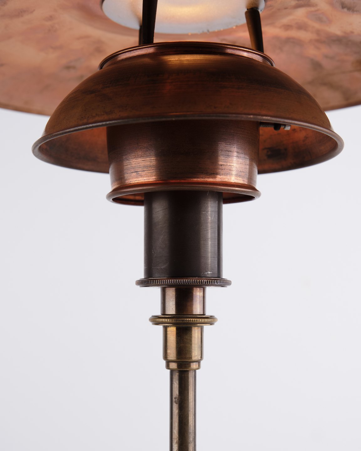 PH 3/2 table lamp designed by Poul Henningsen and produced by Louis Poulsen. The lamp is made with copper shades and a base in burnished brass, giving a warm and exclusive expression.