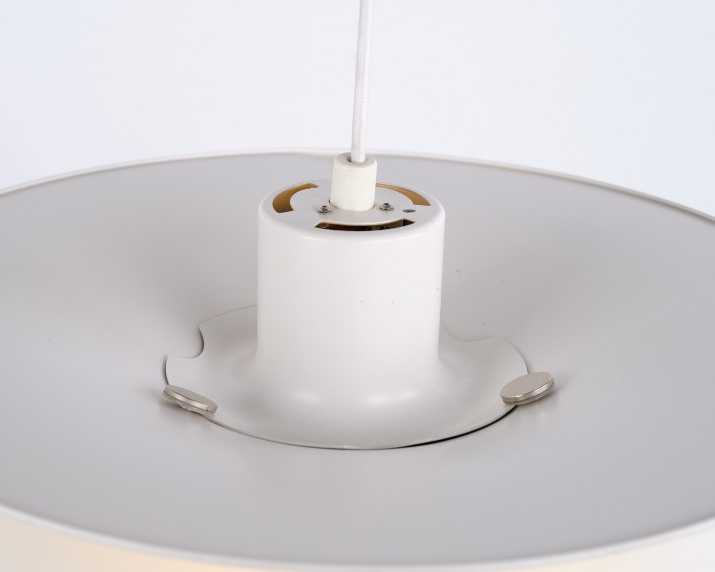 Charlottenborg pendant, model PH 5-4½, designed by Poul Henningsen and produced by Louis Poulsen in the 1980s. The lamp is based on the 4-shade system introduced in 1931 with the purpose of increasing light output and creating more efficient illumination in the room. The construction directs a greater amount of light horizontally, providing better lighting of walls and surroundings compared to traditional 3-shade lamps.