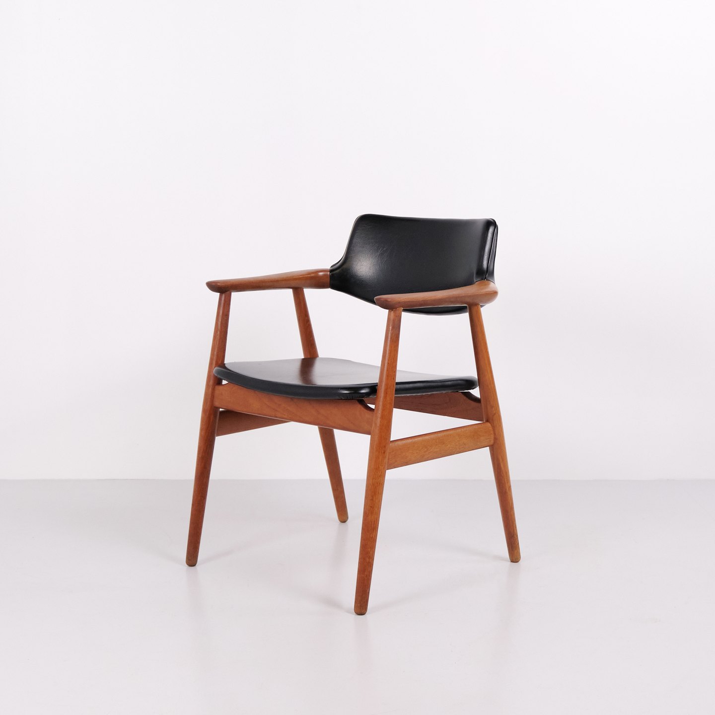 Set of 6 GM11 dining chairs designed by Svend Aage Eriksen for Glostrup Møbelfabrik in the 1960s. Crafted in solid teak with black leather seats and backs. Model GM11 is known for its organic lines, gently curved armrests and high seating comfort. A classic example of Danish mid-century design with fine cabinetmaking details and elegant proportions. Sold only as a complete set.