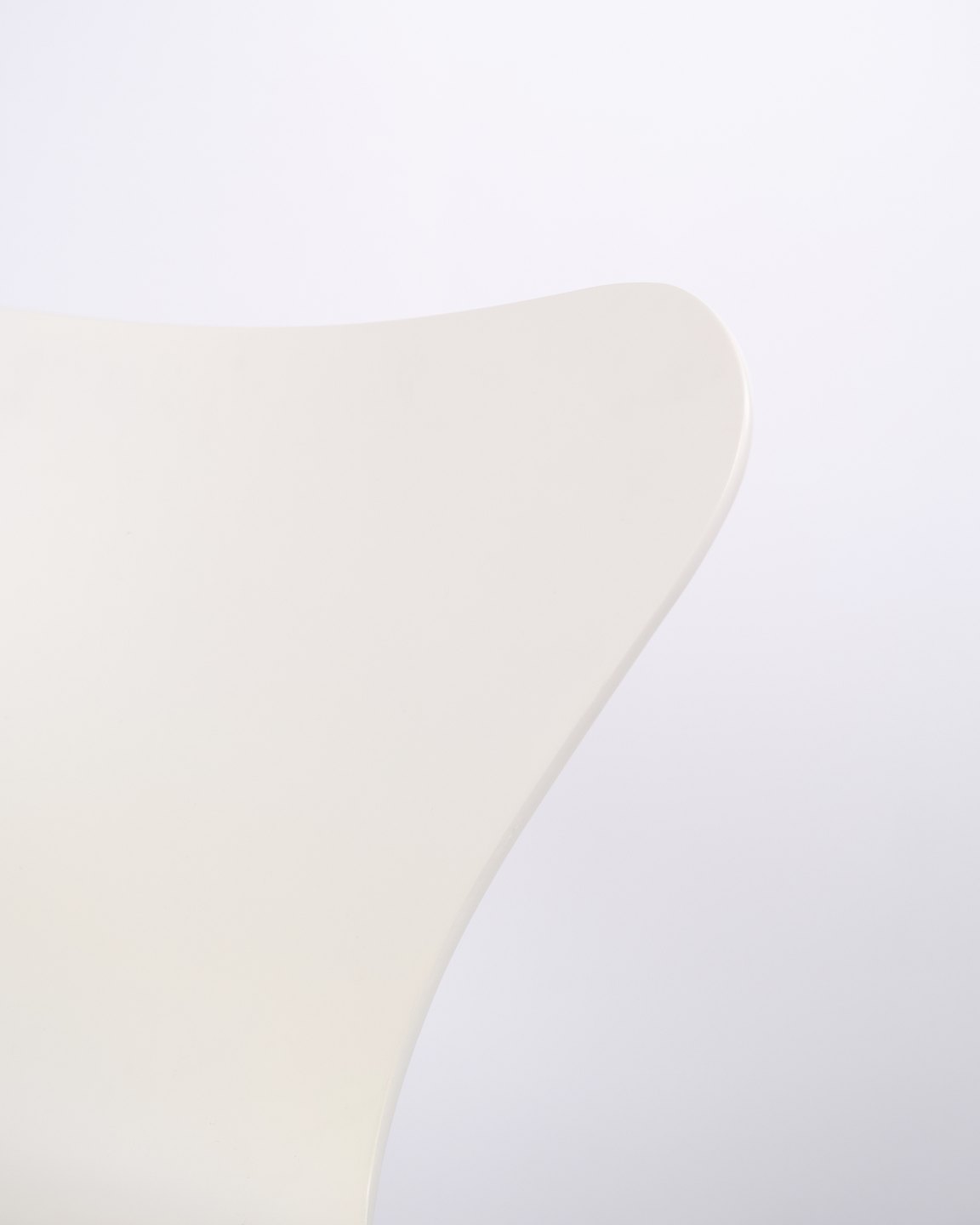 Set of 6 Series 7 chairs model 3107 designed by Arne Jacobsen for Fritz Hansen. The model was introduced in 1955 as a further development of the Ant chair from 1952. Crafted in pressure-moulded veneer with white lacquered finish and chrome-plated tubular steel frame. The distinctive seven-shaped silhouette made the model one of the most produced chairs in Danish design history. Model 3107 has been used in private homes, restaurants, offices and public interiors worldwide and is still produced by Fritz Hansen. Sold only as a complete set.