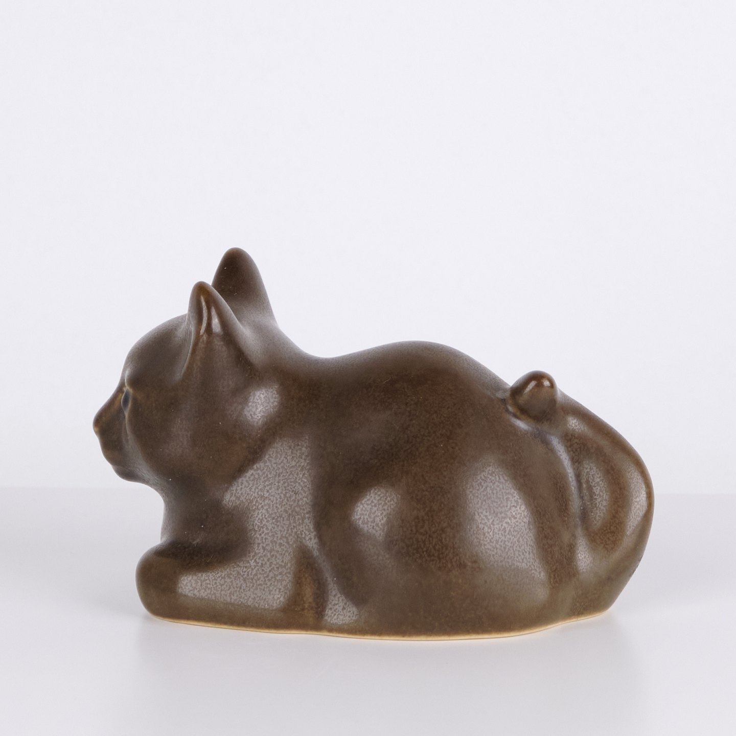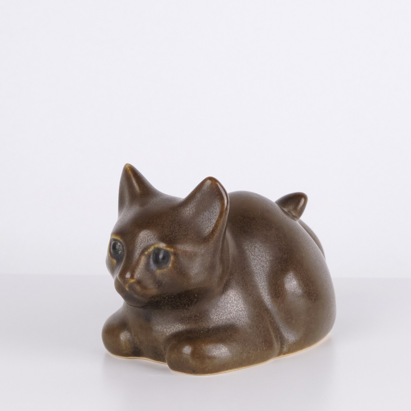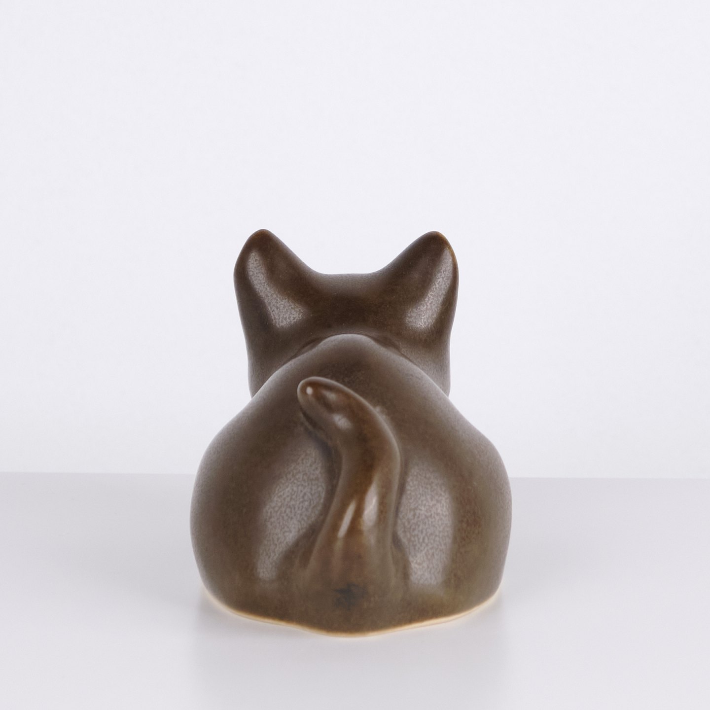 Knud Basse Kat Figur Vase i Brun Glaseret Keramik, Dansk Design 1960erne